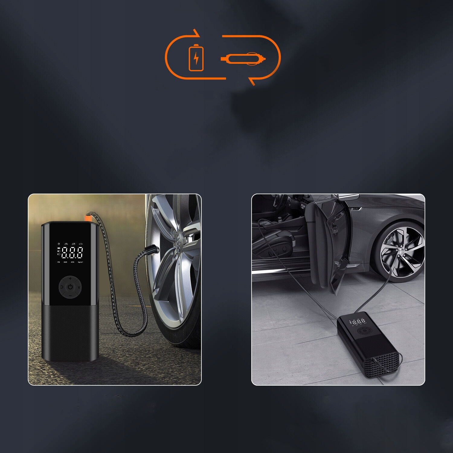 💨Цю електричну повітряну помпу також можна використовувати як зарядний пристрій і дозволяє заряджати пристрої в дорозі.