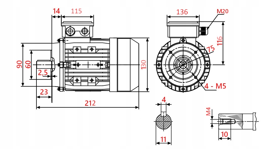 Електродвигун - однофазний 230 В 0,18 кВт з робочим і пусковим конденсатором