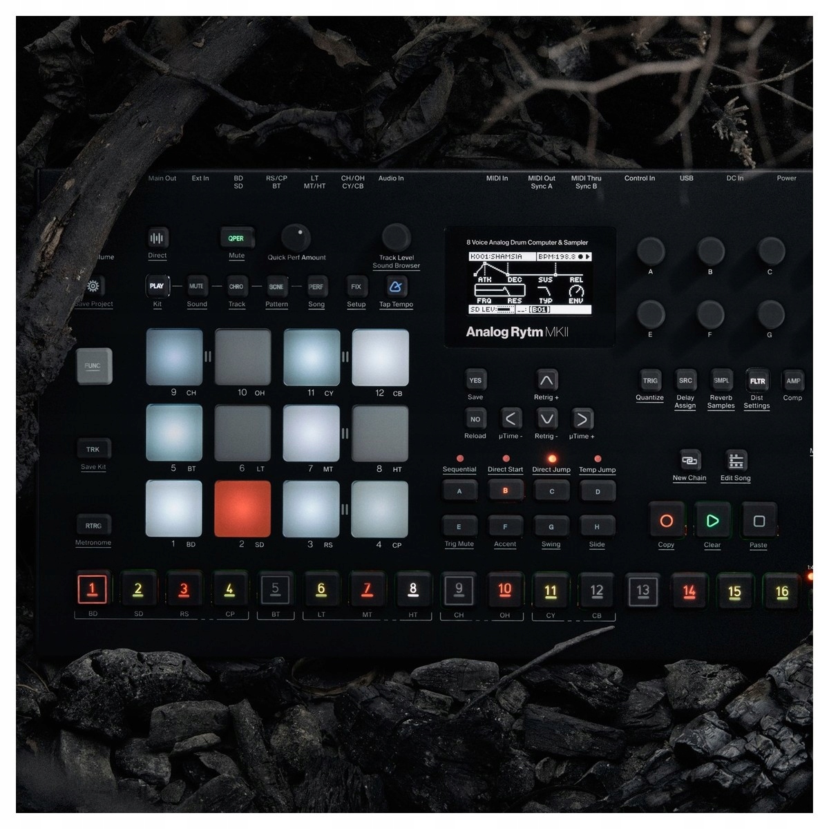 Analog Rytm MKII – це добре відома драммашина та сепплер із 8 головками, цього разу в новій версії 2018 року. Основними відмінностями між версіями Mki та MKII, окрім візуального аспекту, є входи, які дозволяють записувати семпли, 8 x вхідні дані механізму зразка та виразу CV. Крім того, Analog Rytm MKII — це новий алюмінієвий корпус, оснащений новими, дуже міцними кнопками з підсвічуванням, відомими від Digitakt, Octattack MKII і Analog Four MkII, а також новим OLED-дисплеєм. Версія Analog Rytm MKII зберігає повну підтримку даних і проектів версії MKI і має повну підтримку програмного забезпечення Overbridge.