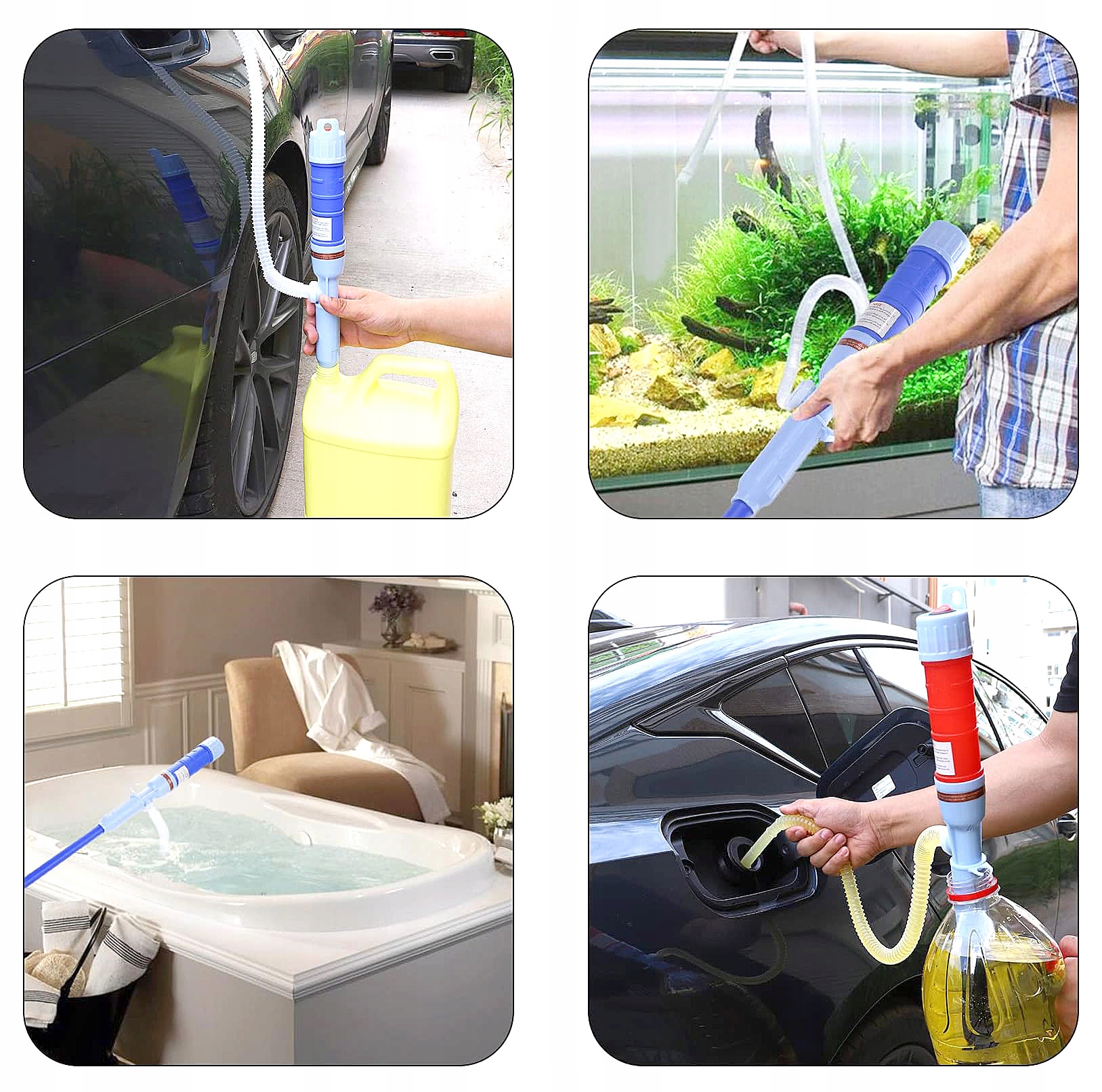 - Дуже простий у використанні, просто занурте один кінець насоса в рідину, вставте вихідний шланг у ємність і натисніть кнопку у верхній частині насоса.