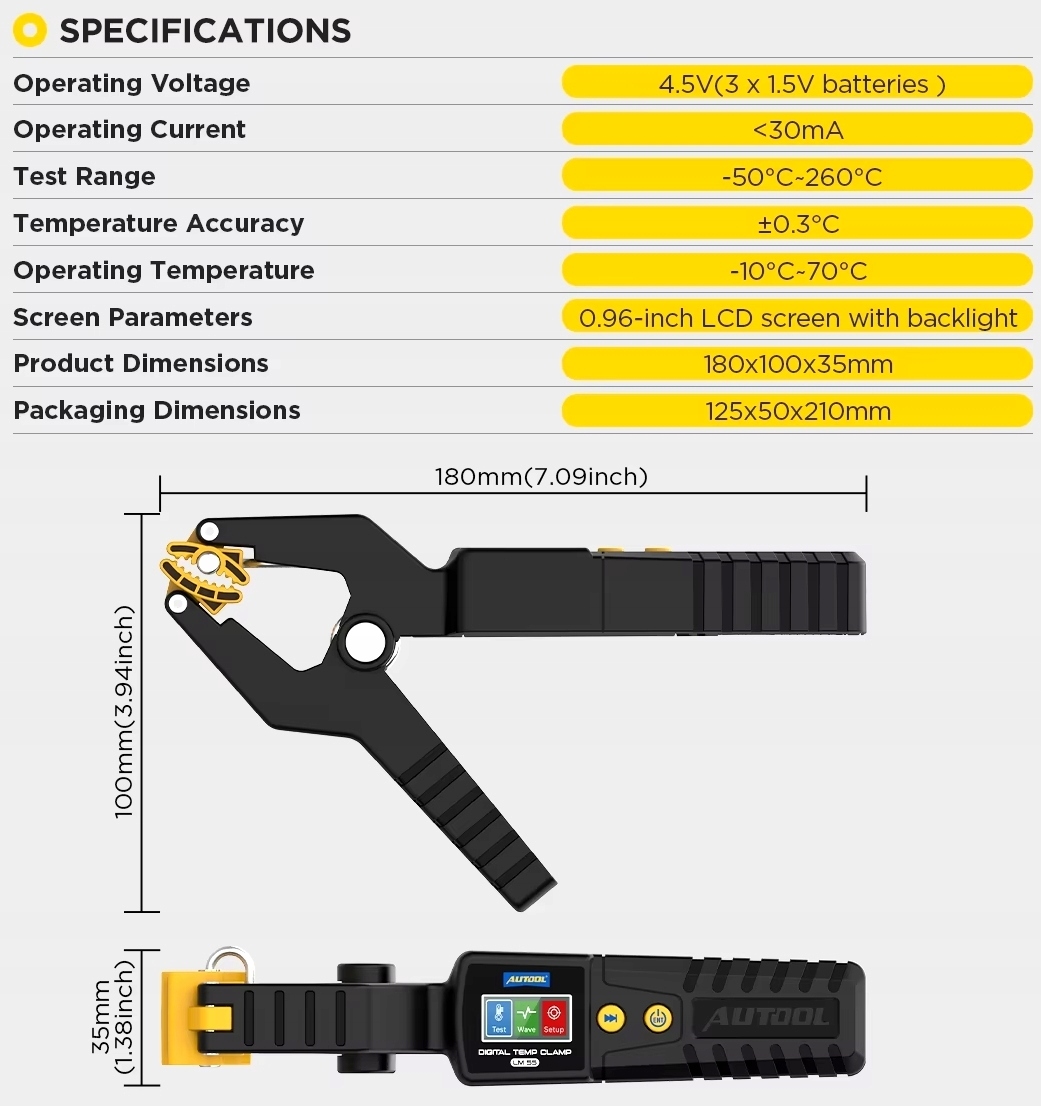 ELEKTRONICZNY ZACISKOWY MIERNIK TEMPERATURY KABLI PRZEWODÓW -50°C do 260°C