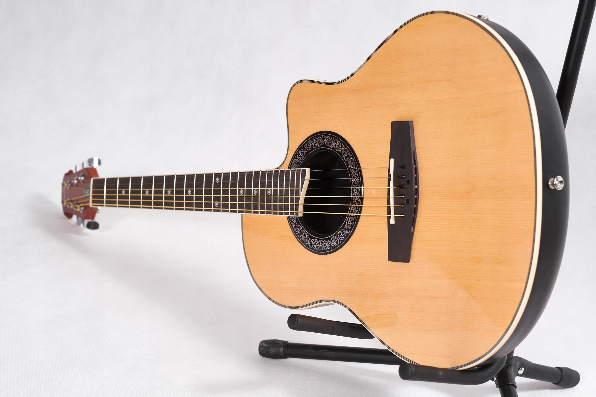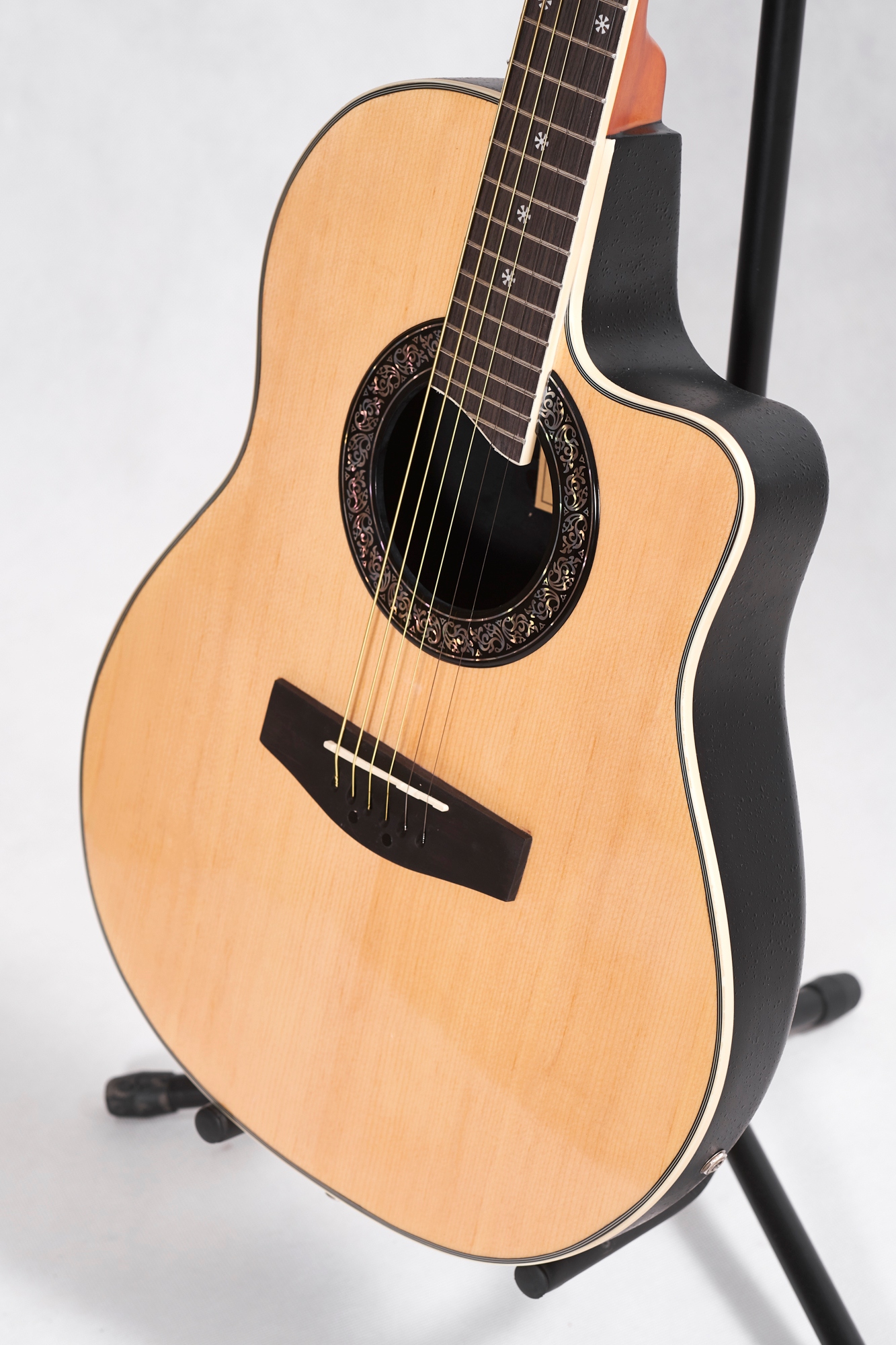 - Форма: овація (заокруглений низ) із вирізом