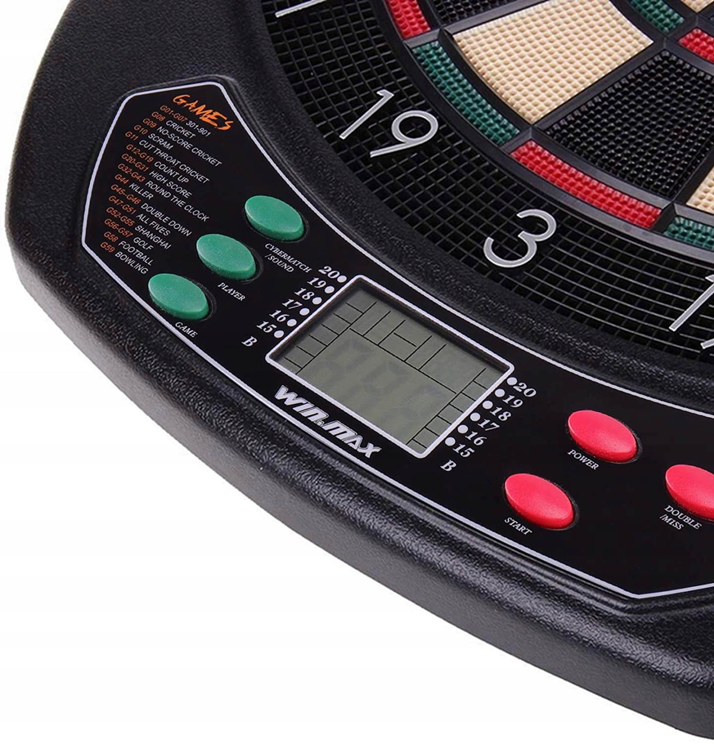 - ЯСКРАВИЙ РК-ДИСПЛЕЙ - Не припиняйте грати, щоб зберегти свої результати, просто насолоджуйтесь грою з РК-дисплеєм. Максимальна кількість окремих гравців обмежена 4. Цей дартс здатний вести рахунок для командної гри: 2 команди по 2 (4 особи), 2 команди по 3 (6 осіб), потім 2 команди по 4 (8 осіб) )