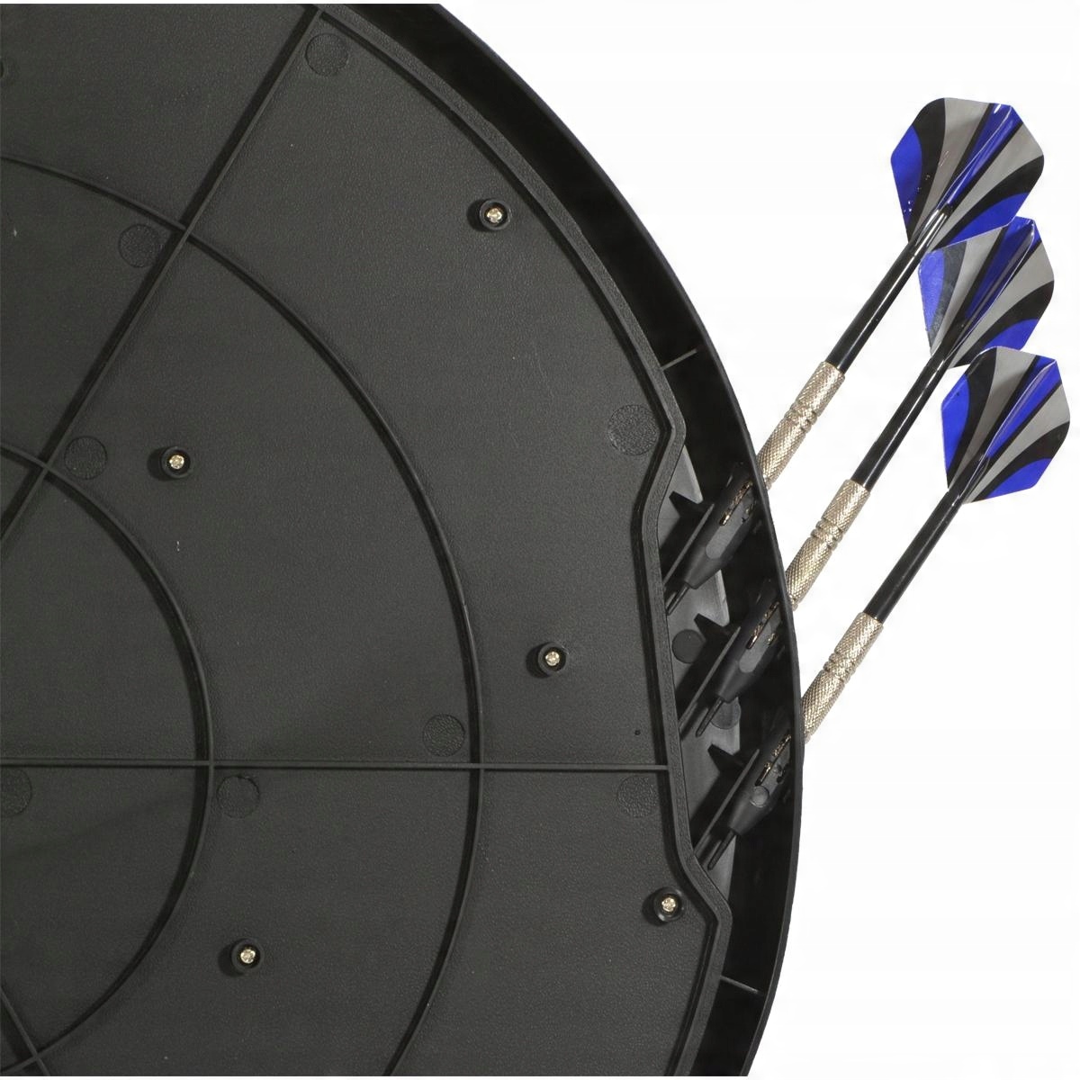 Шість інтегрованих тримачів для дротиків спрощують їх зберігання, а спеціальні тримачі на задній частині дротиків дозволяють кріпити мішені на стіні