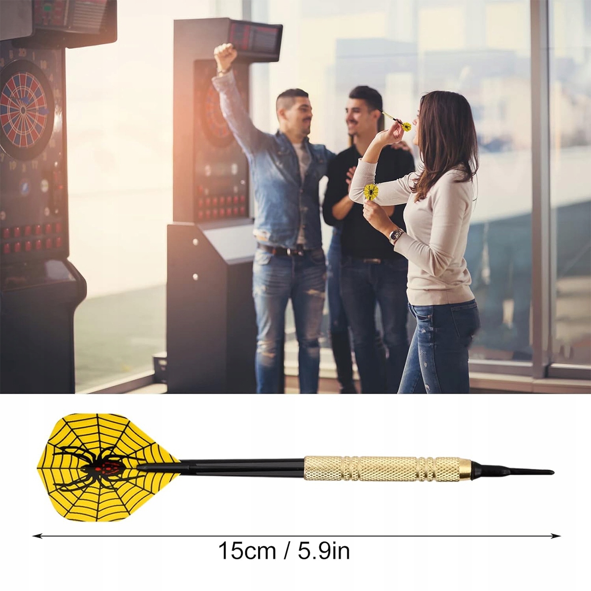 ●Лише комплект дротиків з м’яким наконечником, інші демонстраційні аксесуари на зображенні НЕ входять (наприклад, мішені для дартсу).
