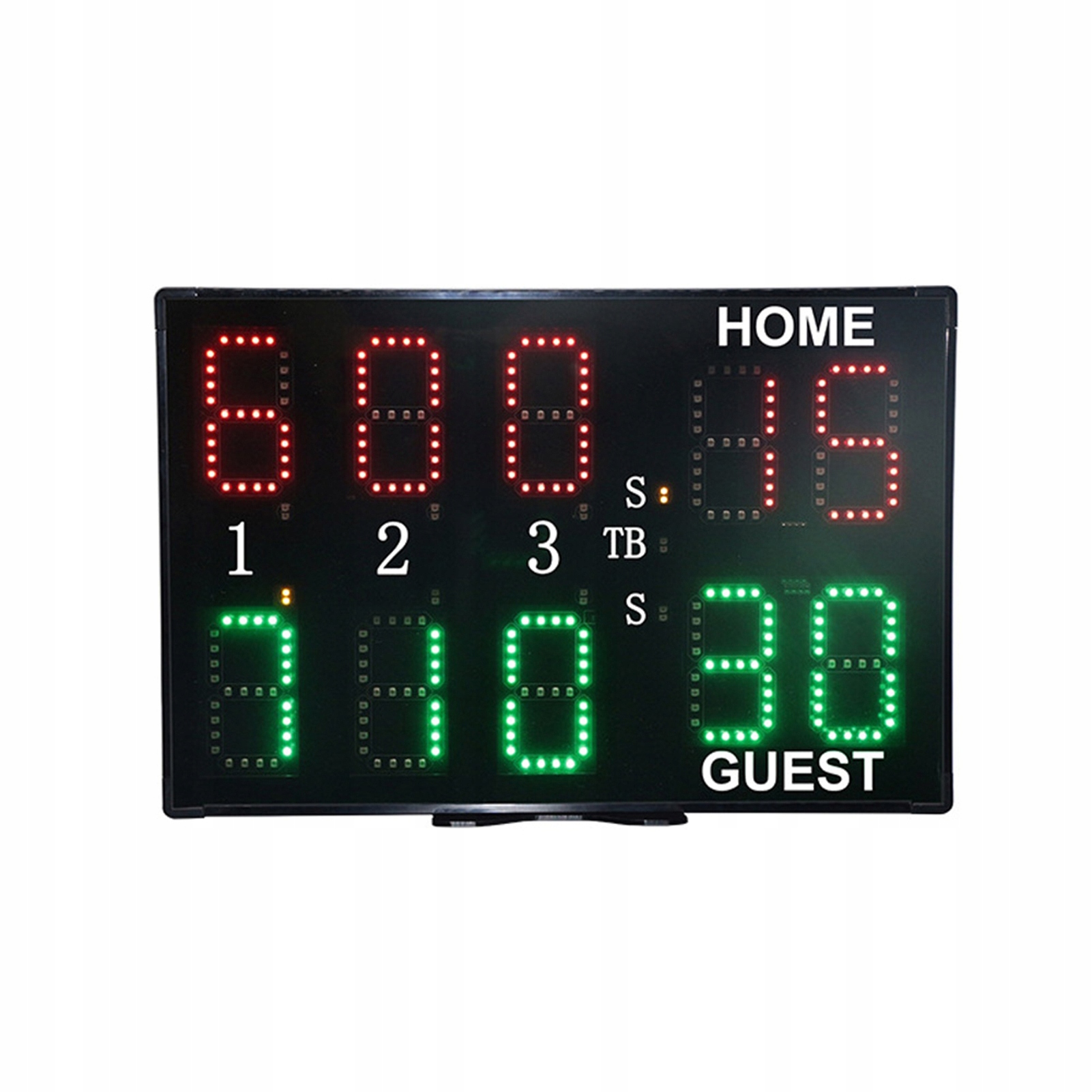- Ця таблиця результатів має вузьку структуру і оснащена бездротовим пультом дистанційного керування для легкої роботи. Світлодіодний дисплей чіткий і видимий. Він працює від акумулятора і має тривалий час готового. Підходить для заходів та тренувальних акумуляторів з тенісу.