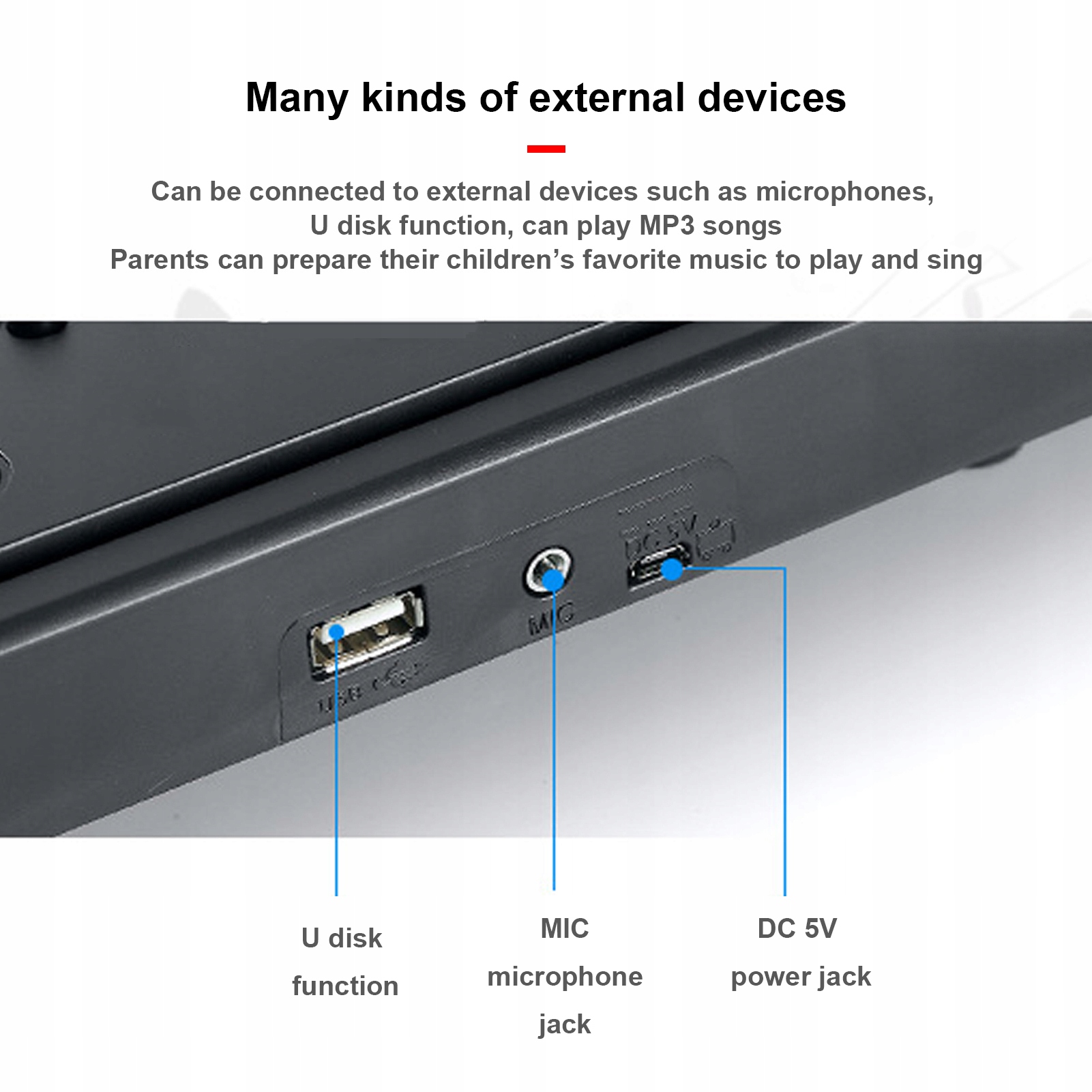 3. Ви можете приєднатися до зовнішніх пристроїв, таких як мікрофони, функція диска та можете грати пісні MP3. Батьки можуть підготувати улюблену музику своїх дітей, щоб грати та співати.