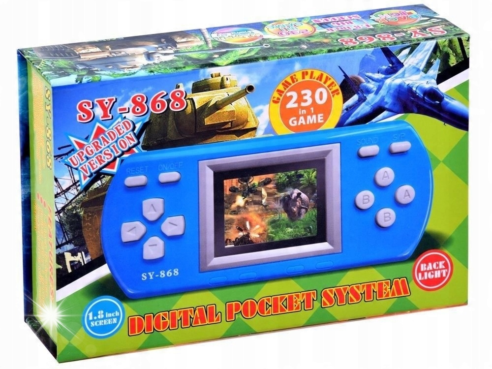Електронна, кишенькова комп'ютерна гра - це пропозиція для маленьких та великих дітей. Чудова консоль - гра задовольнить смаки навіть найвибагливіших любителів комп'ютерних ігор. Він має фабричні 230 ігор. Консоль має сучасний вигляд, прозорий, яскравий та кольоровий РК -дисплей представляє чітке зображення, красиву рідку графіку та яскраві кольори. Ергономічне розташування кнопок дозволяє повний контроль під час гри.