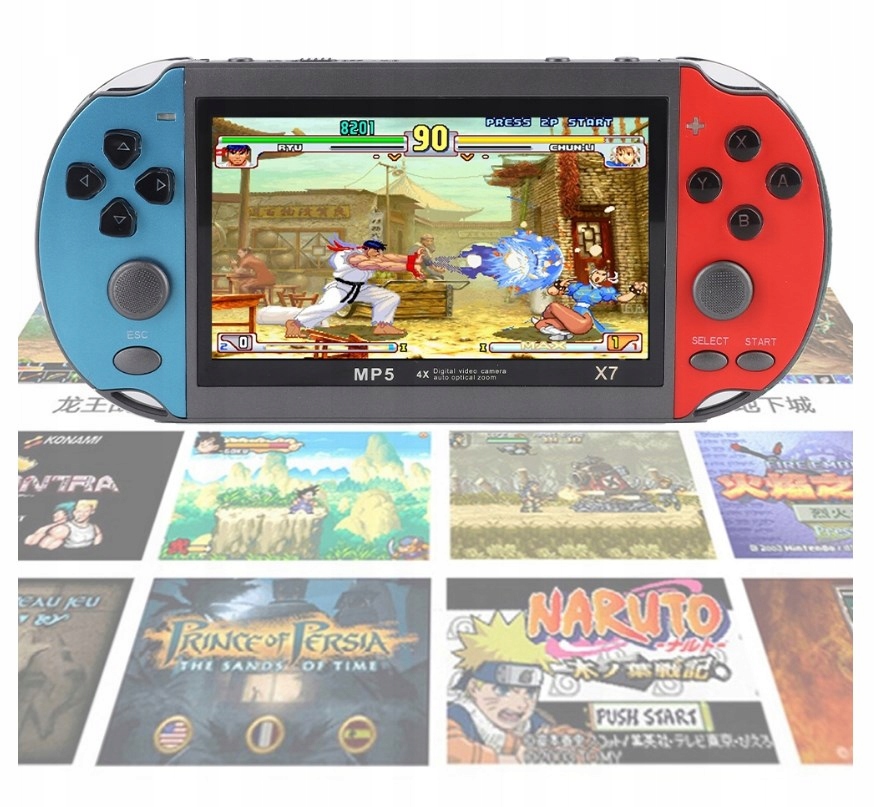 - Пам'ять: X7 (4,3-дюймовий високоякісний дисплей із 8 ГБ пам'яті), оновлення чіпа, консоль для ігор підтримує 8 -розрядні, 16-розрядні, 32- та 64-розрядні аркадні ігри.