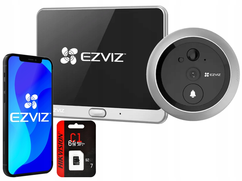 Інтелектуальний WiFi вічко з камерою, дверним дзвінком і датчиком руху - DP1C EZVIZ + карта пам'яті 64 Гб