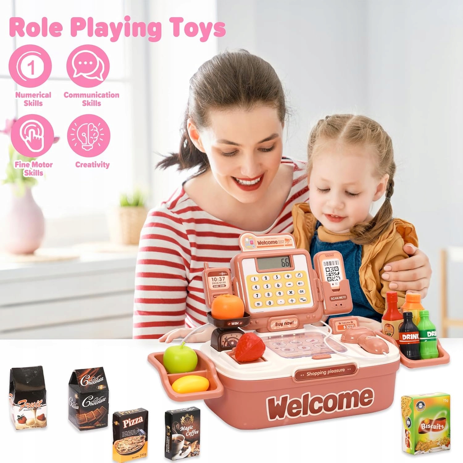 Цей рожевий касовий апарат для дітей - це фантастична розвиваюча іграшка, яка дозволяє дітям зіграти роль продавця та дізнатися про світ покупок 🎯. Реалістичні звукові ефекти, шухляда, що відкривається, і сканер роблять гру надзвичайно захоплюючою та насиченою емоціями 💖.