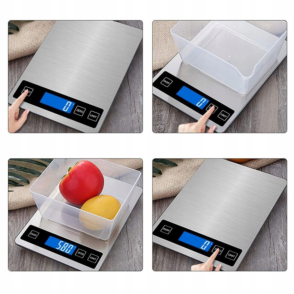 - водонепроникна цифрова вага може важити до 15 кг, точність- 1 г, діапазон помилок- плюс або мінус 3 г, а мінімальна вартість ваги- 3 г, дуже підходить для вимірювання різних видів продуктів, борошна, молока тощо. Відбитки пальців, прості в очищенні та обслуговування.