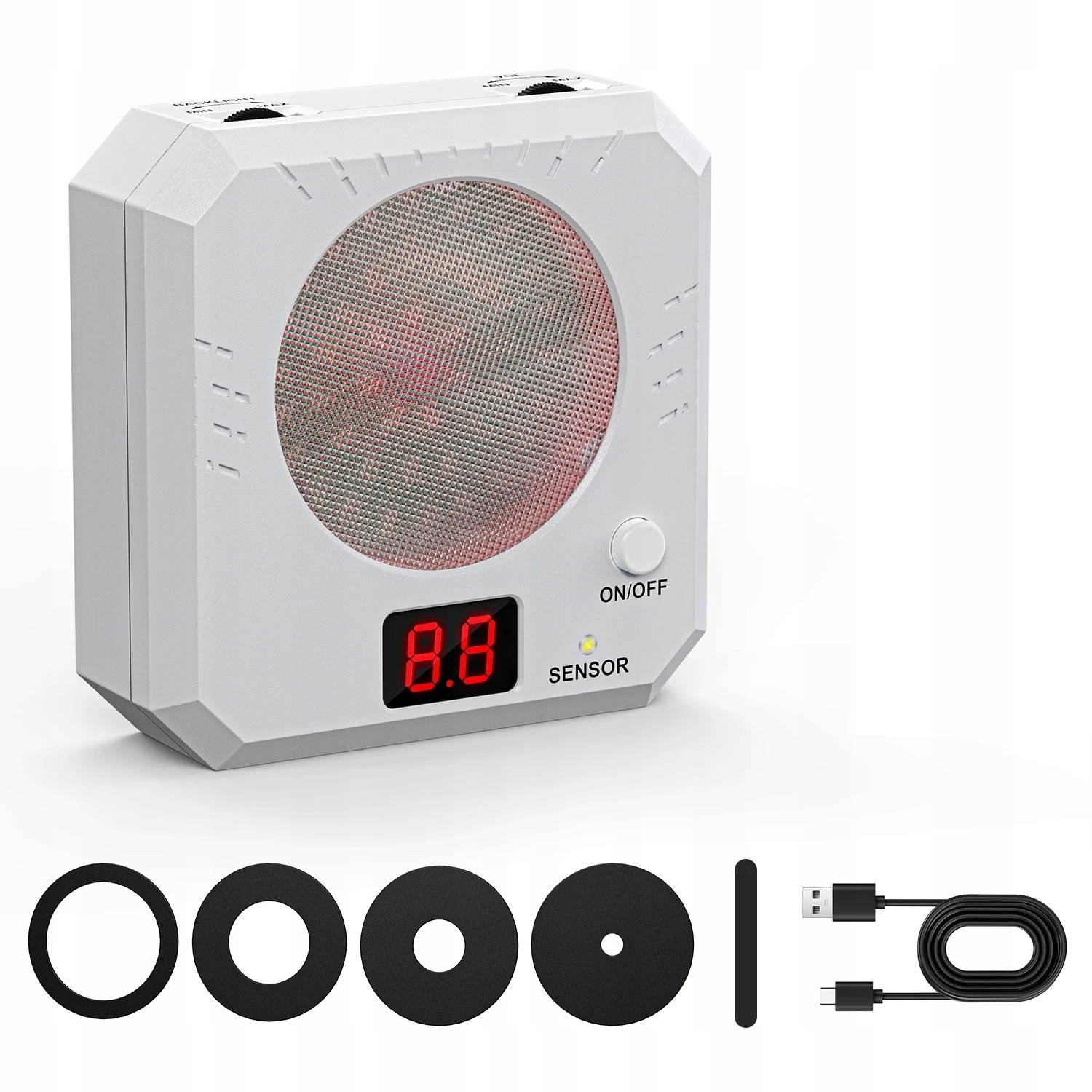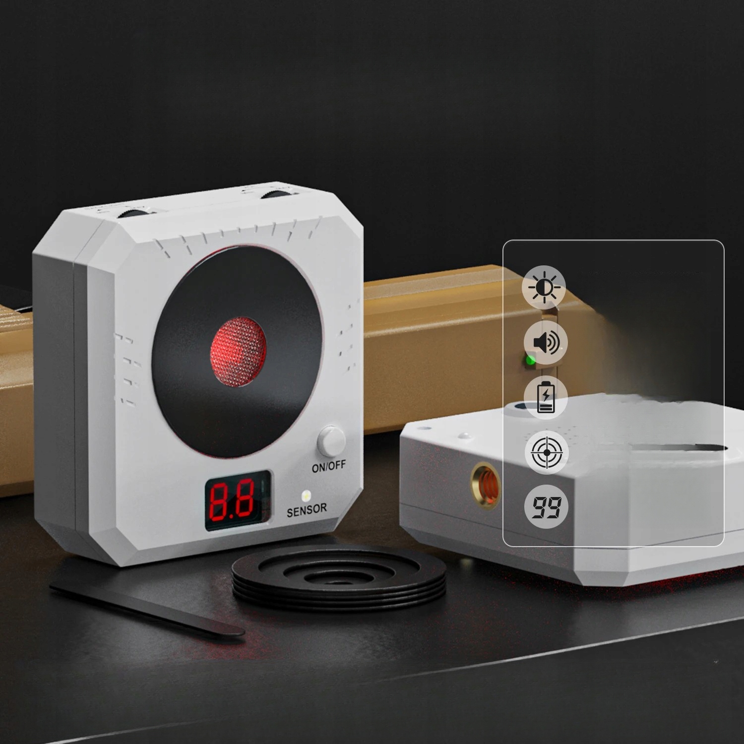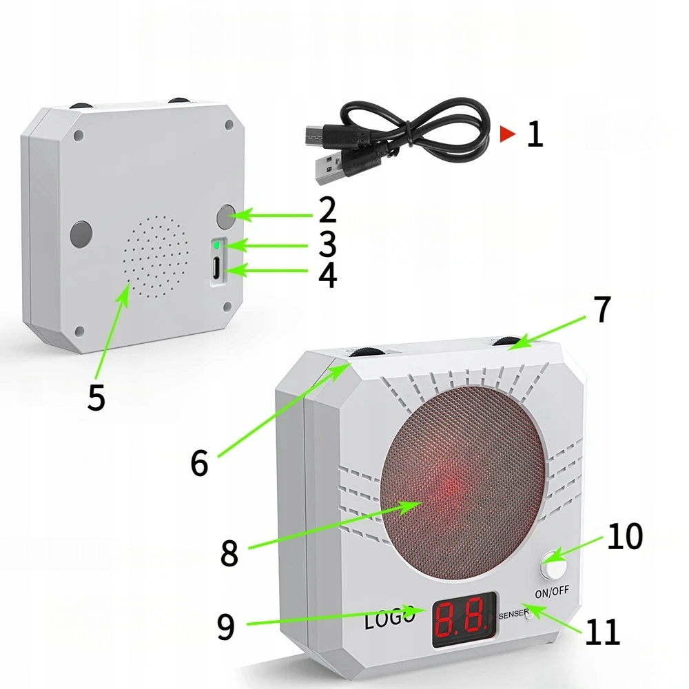 Швидке заряджання через USB усуває необхідність частої заміни батареї, регулятор яскравості регулюється відповідно до світлого/темного середовища, а регулятор гучності гарантує, що пристрій не заважатиме іншим, що робить його більш гнучким для використання в приміщенні.
