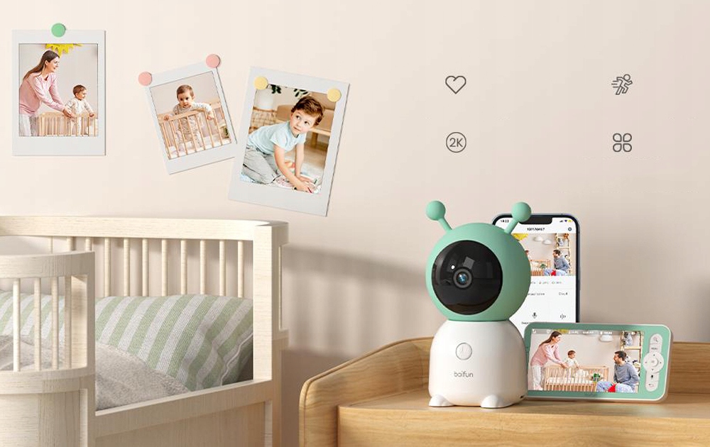 Розумна радіоняня Boifun підтримує підключення до РК-монітора (сигнал 300 м) і мобільного додатку (потрібен Wi-Fi)