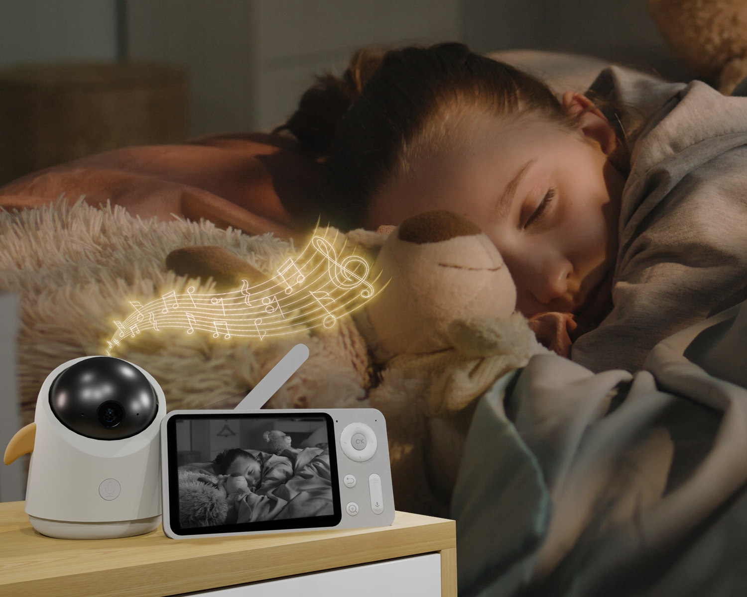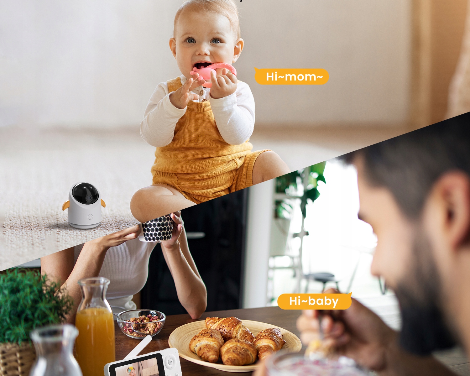 Ця камера спостереження за дитиною оснащена датчиками виявлення руху та шуму, які дозволяють миттєво помічати рухи чи зміни крику як через монітор, так і через мобільний пристрій. Коли ви зайняті роботою по дому або спите вночі, ви вчасно дізнаєтеся, коли ви потрібні своїй дитині. Підтримка двостороннього аудіо, розмовляйте та заспокоюйте дитину голосом телефону або відтворюйте колискові/білий шум, щоб приспати дитину.