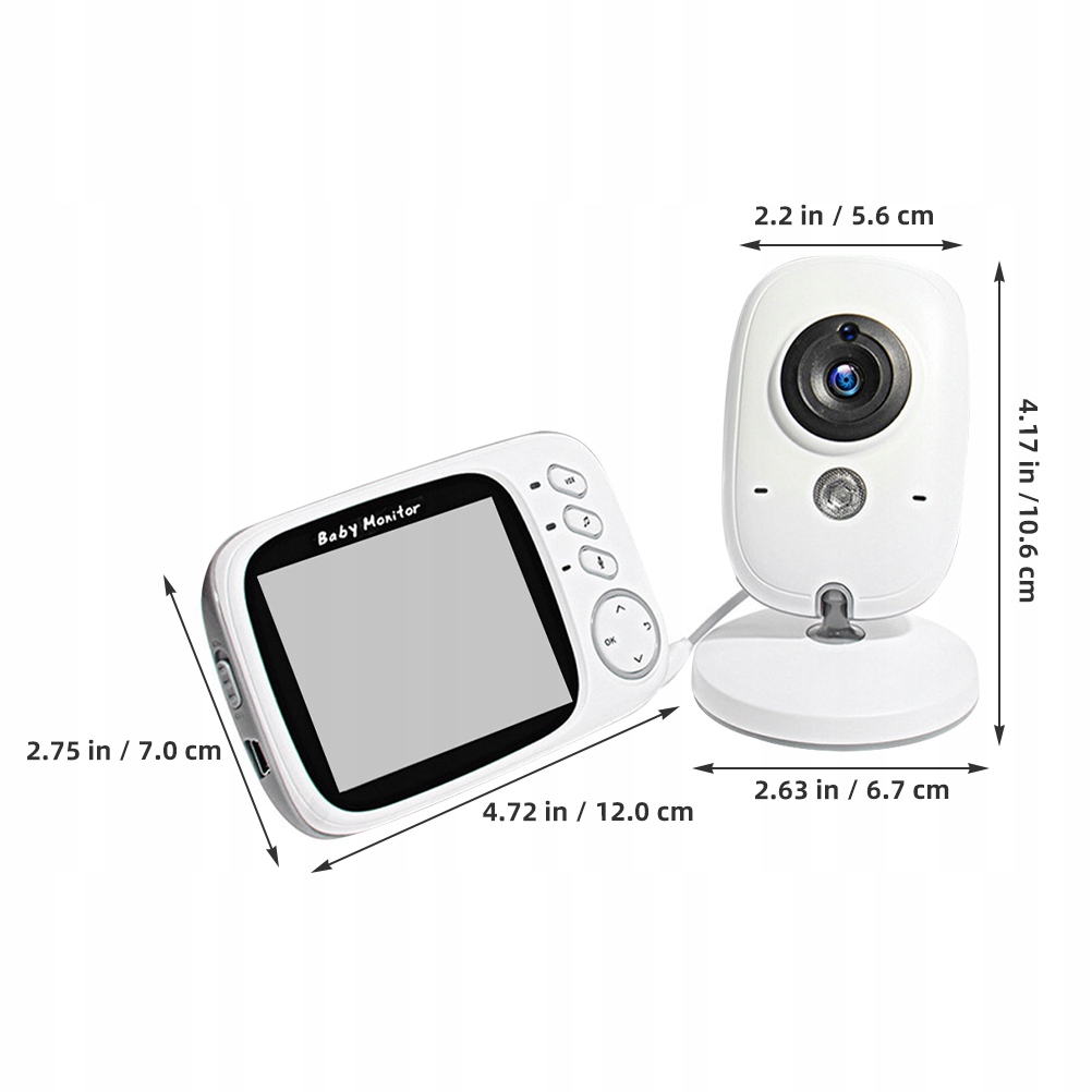Радионяня з камерою оснащена великим 3,2-дюймовим кольоровим екраном, який показує чітке зображення/відео вашої коханої людини, ви не пропустите момент росту вашої дитини. (Камера завжди має бути під’єднана до джерела живлення, основний блок є акумуляторним і бездротовим. )