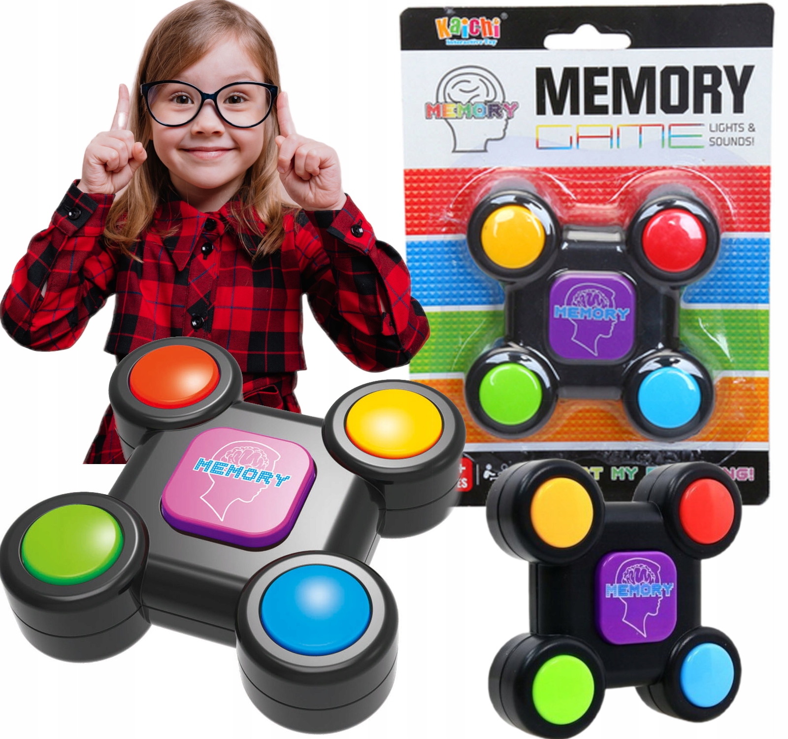 гра пам'ять , , яка тренує пам'ять та координацію двигуна - Іграшка грає довше і довше світло Послідовності та голос, які слід повторити. Послідовність з кожним правильним повторенням збільшується. Ви вводите більш високі рівні. перемога батьків не така очевидна! Консоль можна успішно використовувати як туристичну гру - вона має комфортний розмір