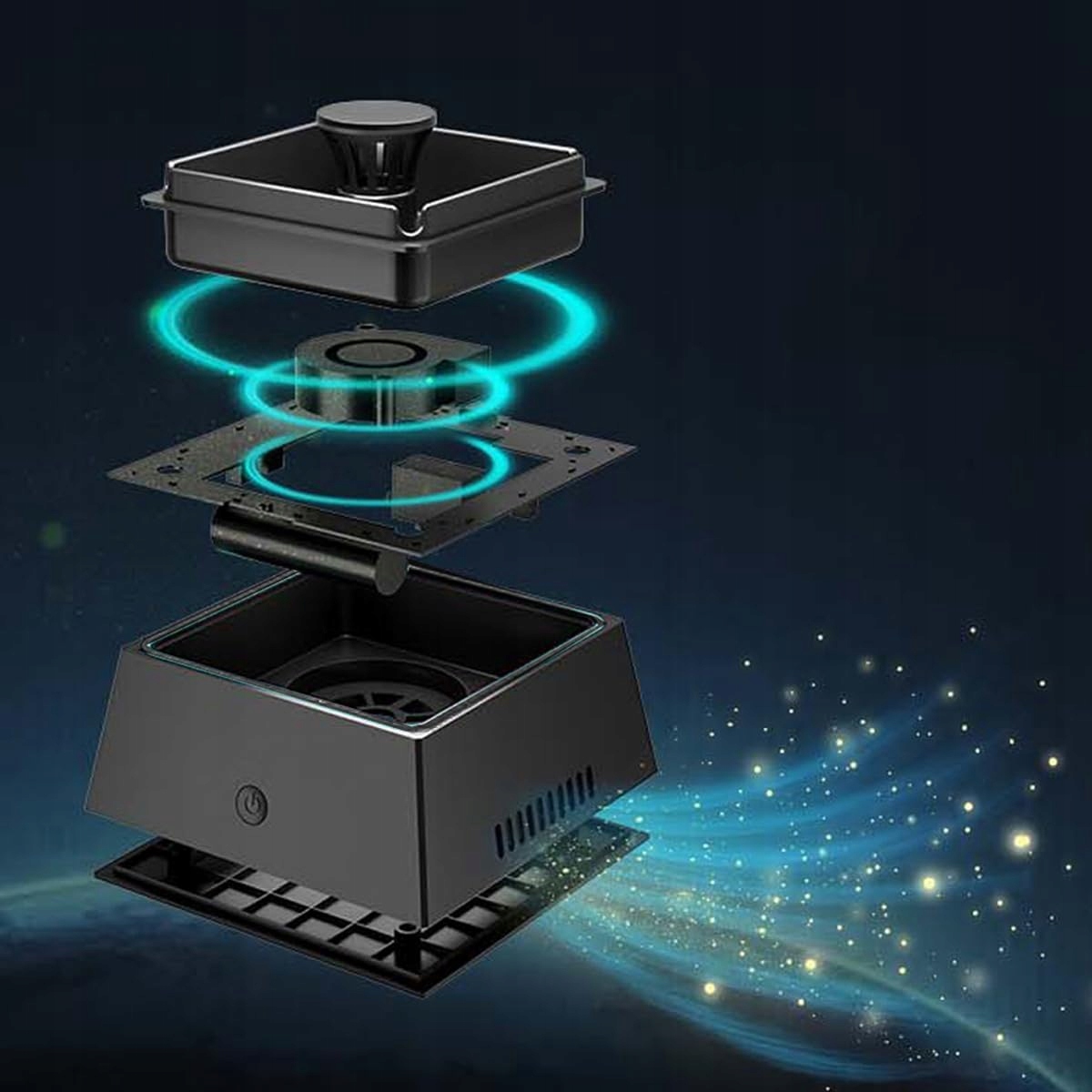 🌬️ Попільничка з очищенням повітря - поєднання попільнички та міні-очищувача, який завдяки всмоктуванню на 360° ефективно зменшує дим та неприємні запахи.