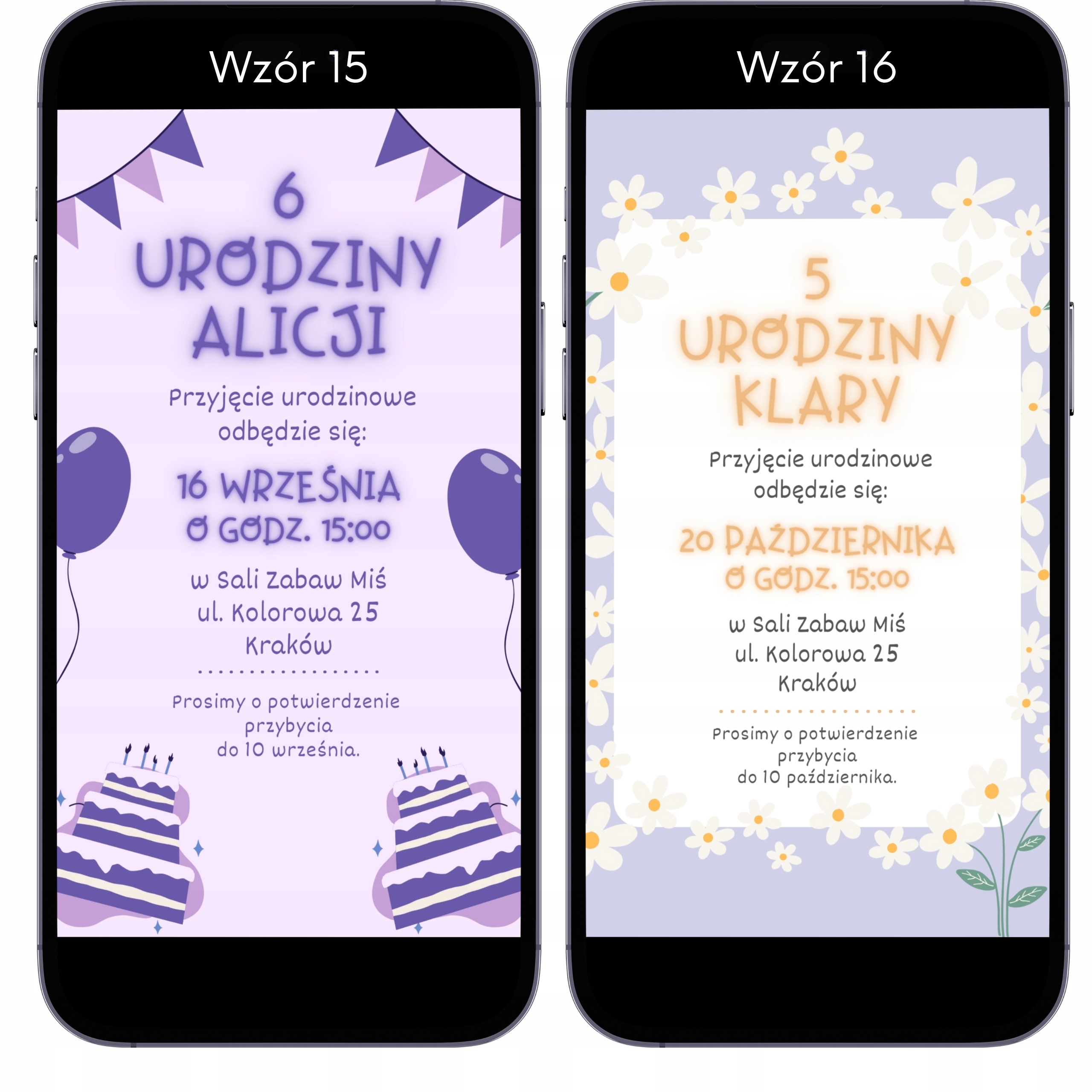 - Персоналізоване запрошення: високоякісний файл JPG у форматі 1080x1920, ідеальний для електронного надсилання через mms, електронною поштою чи миттєвими повідомленнями.