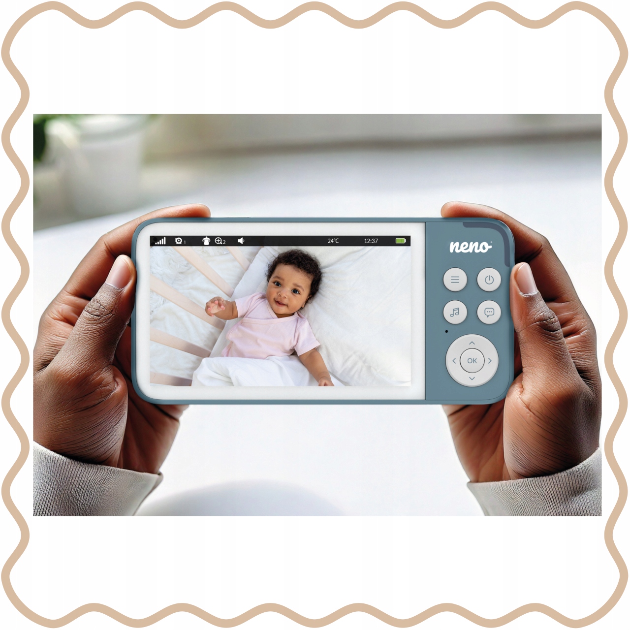 Neno Vedo Blue - це сучасний електронний радіоняня з бездротовим приймачем, який забезпечує спокійний сон дитини та комфорт батьків. Завдяки автоматичному нічному режиму, двосторонньому зв’язку, широкому радіусу дії та великому екрану у вас все під контролем – навіть з іншого кінця дому. Його естетична форма, широкі функції та простота використання роблять його незамінним помічником у щоденному догляді за малюком.