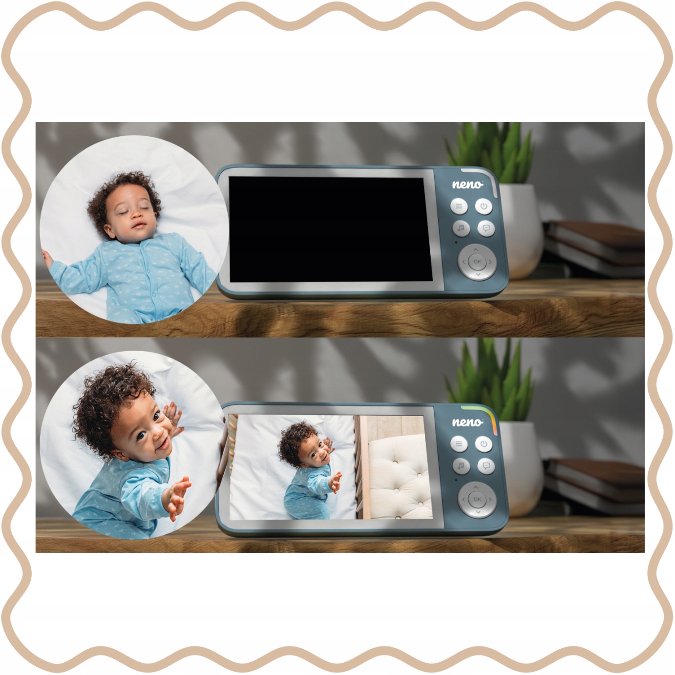 У вас більше ніж одна дитина? Або, можливо, ви хочете стежити за кількома кімнатами? Neno Vedo Blue дозволяє підключити додаткову камеру, що дозволяє одночасно переглядати з різних місць. Це ідеальне рішення для батьків, які хочуть стежити за всім домом, не перемикаючи пристрої. Якщо ви хочете скористатися всіма перевагами функції з’єднання двох камер, ми пропонуємо придбати додаткову камеру Neno Vedo.