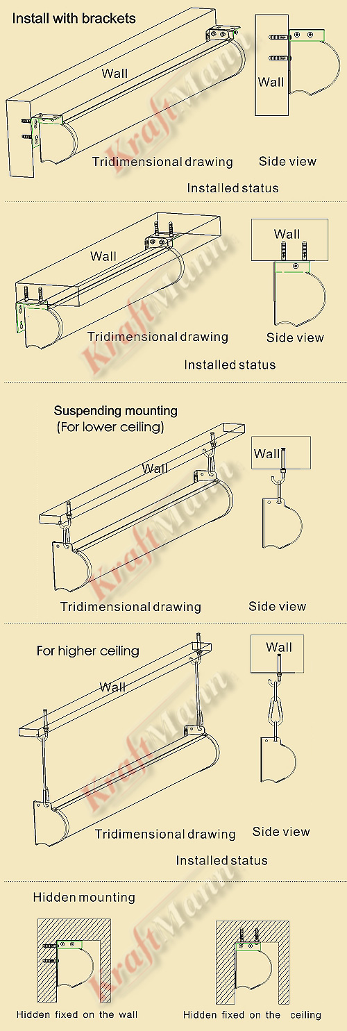 Додаткові опції:: чорна рамка будь-якої товщини, чорний верхній набіговий ремінь будь-якої ширини, касета пофарбована в будь-який колір RAL, овальний або квадратний профіль касети, надтихий і швидкий двигун, управління ( клавіатура/РЧ-радіо/ інфрачервоне ІЧ-випромінювання/тригер 12 В або 230 В/RS-232/будь-який інший), ...