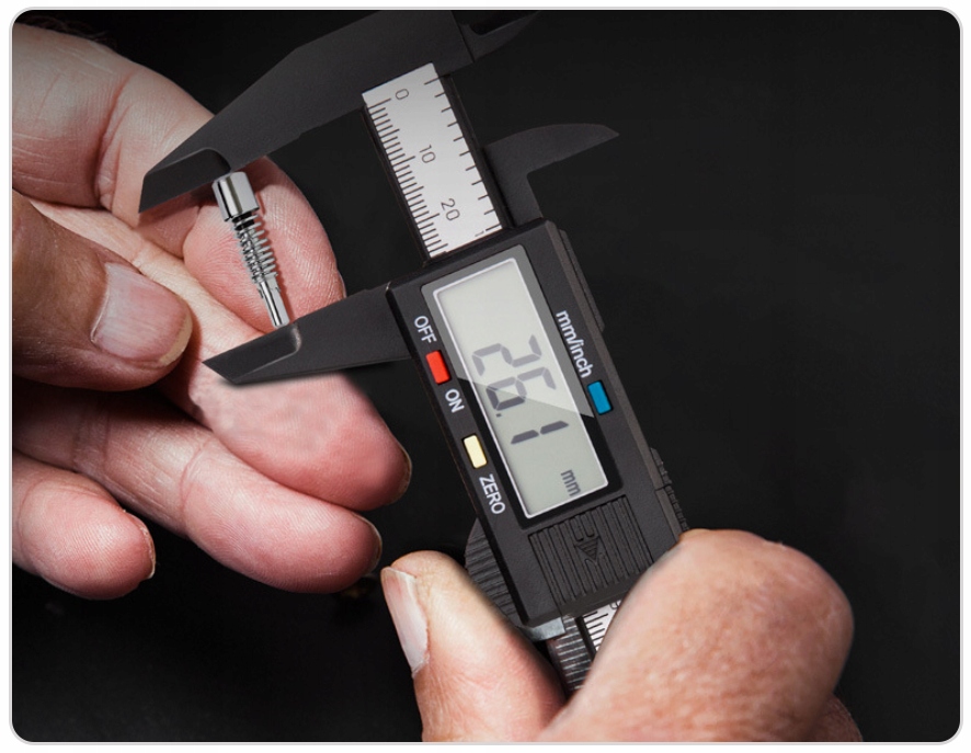 Центрциркуль виконує зовнішні та внутрішні вимірювання, а також вимірює відстань і глибину завдяки надзвичайно чіткій шкалі та вбудованому екрану.