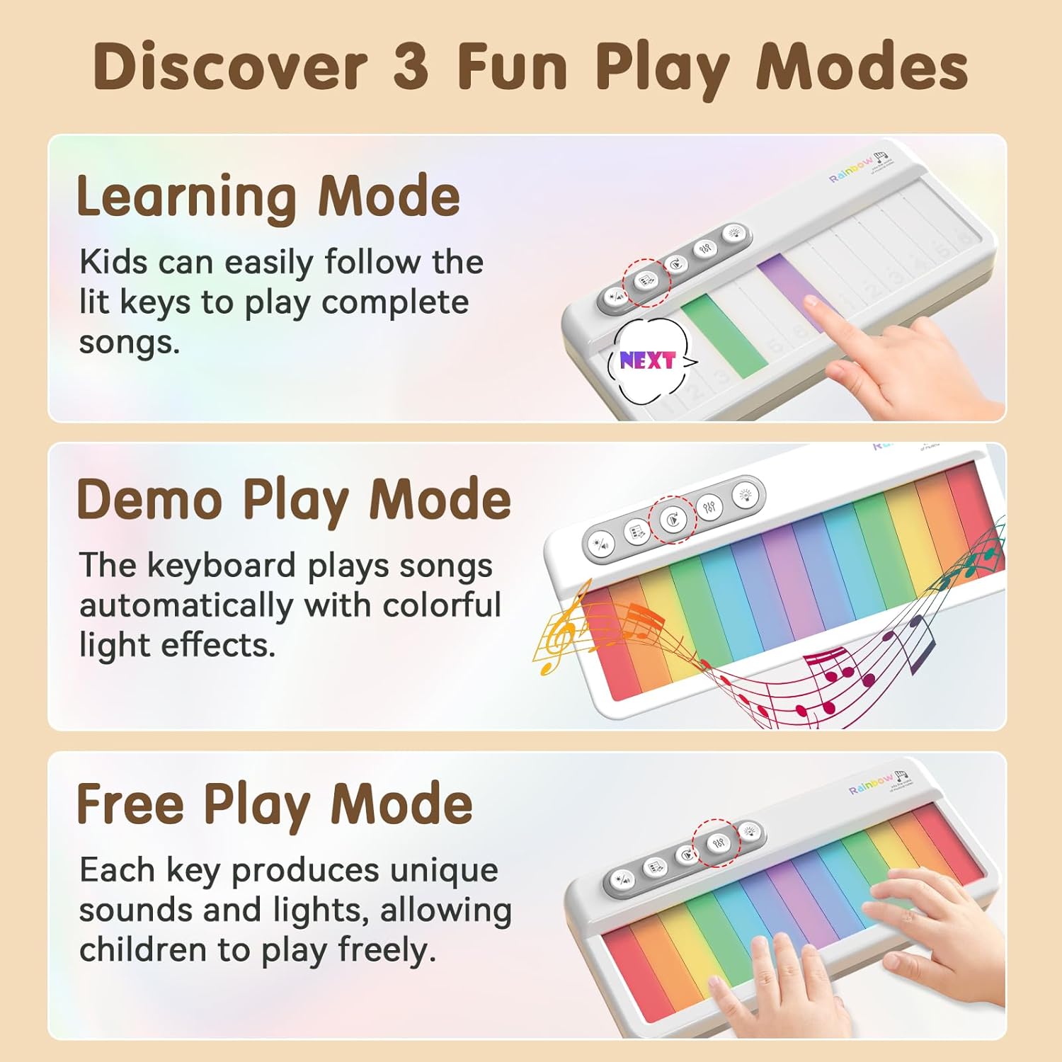 Вбудований режим навчання допомагає дітям крок за кроком вивчати мелодії, а п'ять інструментів і 13 демонстраційних пісень розвивають слух і ритм 🎶 Завдяки цьому кожна дитина може відчути себе справжнім артистом! 🎤🌟