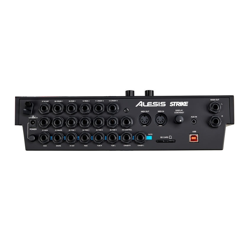 Модуль Strike Pro, безумовно, є найбільш універсальним і ефективним. модуль, який коли-небудь пропонував Alesis. Значна частина неймовірної ігрової здатності та характеру цього набору походить від його великої звукової бібліотеки з більш ніж 136 спеціальними наборами, виготовленими з понад 1800 інструментів і 45 000 семплів. Модуль має вбудовані можливості семплювання, 16 ГБ зовнішньої пам'яті на карті та USB/MIDI-з'єднання, яке можна використовувати разом із вашим улюбленим програмним забезпеченням для створення музики, а також потужним програмним редактором Strike. За допомогою цього редактора гравці можуть зібрати власні семпли в кілька шарів і зібрати ідеальну барабанну установку, а потім перенести її на модуль через USB. Контролювати кожну функцію та елемент керування неймовірно легко завдяки 4,3-дюймовому кольоровому світлодіодному екрану модуля Strike Pro, на якому миттєво відображаються всі налаштування та параметри плеєра. Це дає вам безпрецедентну гнучкість і можливість програмування в поєднанні з повним володінням статусом вашого набору.