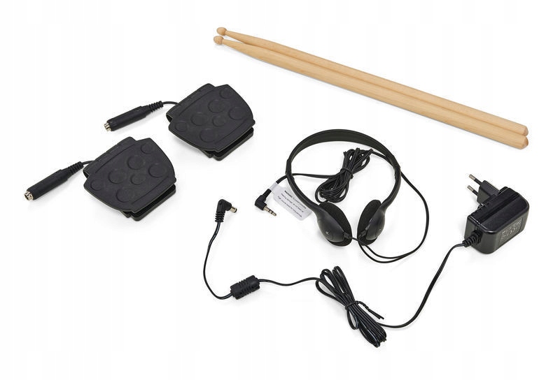 Окрім електронних барабанів та виділених аксесуарів (джерело живлення, ключ налаштування, кабелі), набір паличок, стільців та навушників включатиме кожен набір.