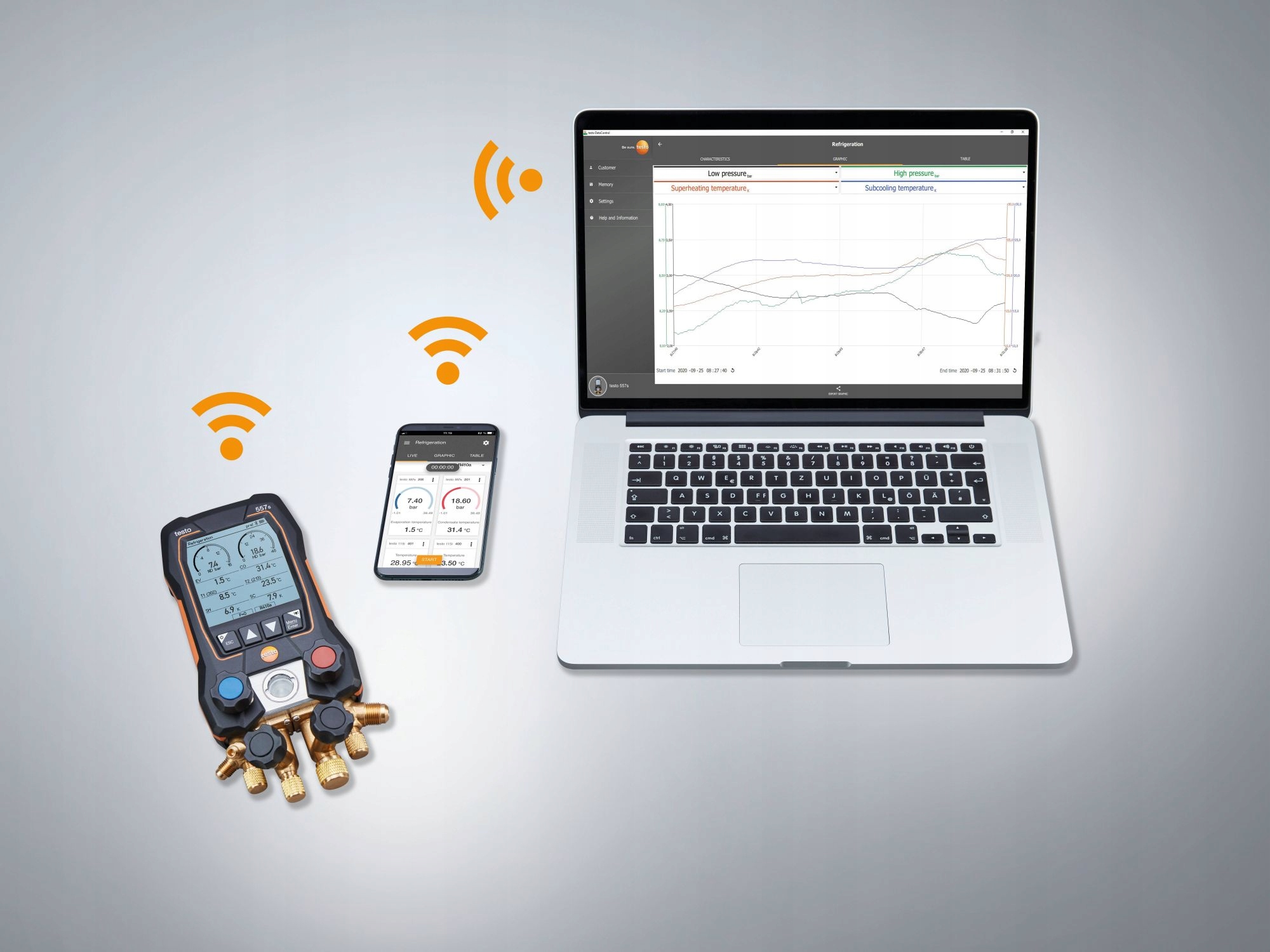 - Швидкі результати вимірювання завдяки спеціальним меню для цільового перегріву, вакууму та тиску тестове вимірювання