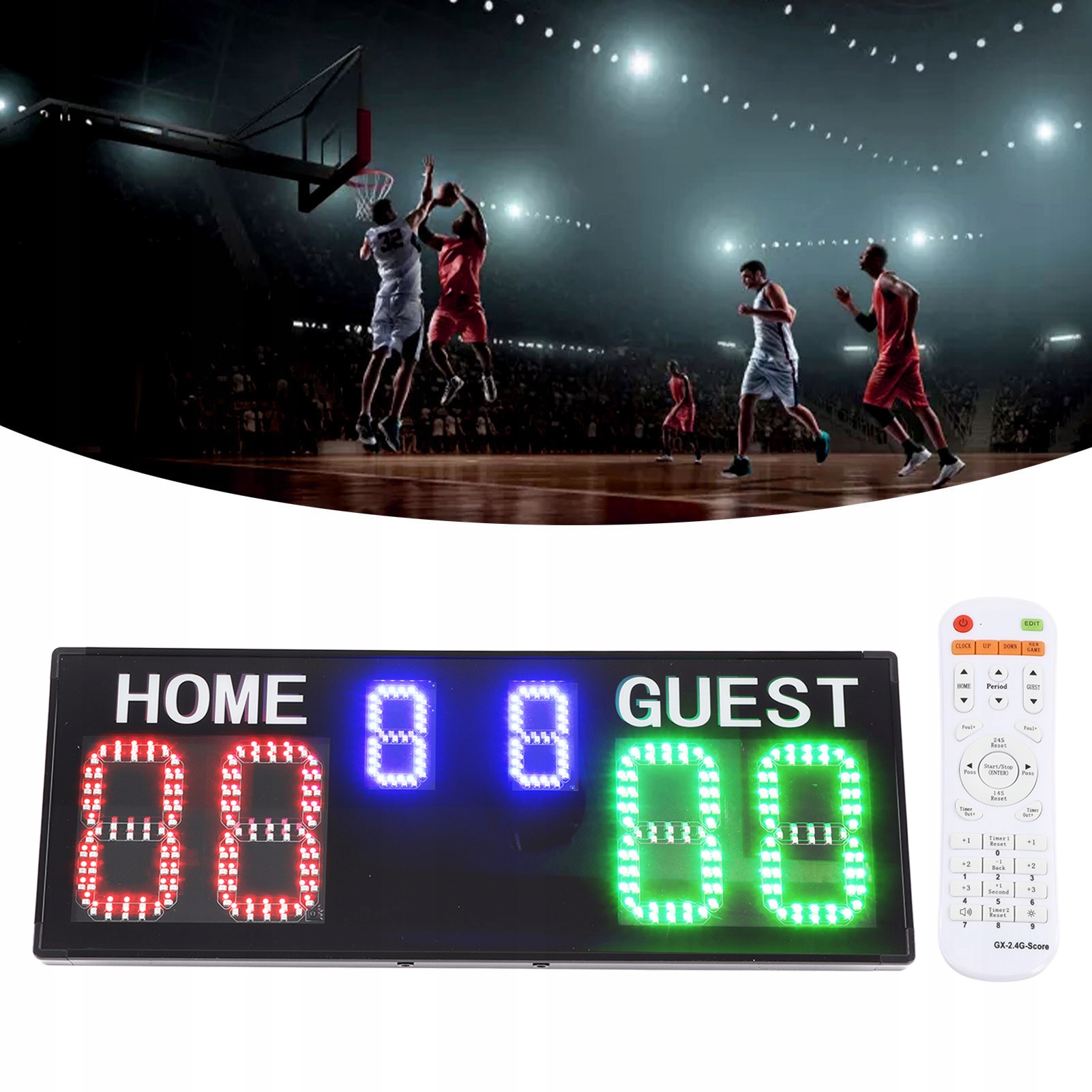 1. [Світлодіодний екран] Плата результатів має прекрасний дисплей зі світлодіодами, використовуючи червоні світлодіоди з діагоналі 3 дюйма та 2,3 дюйма, що можна чітко видно з відстані 20 метрів.