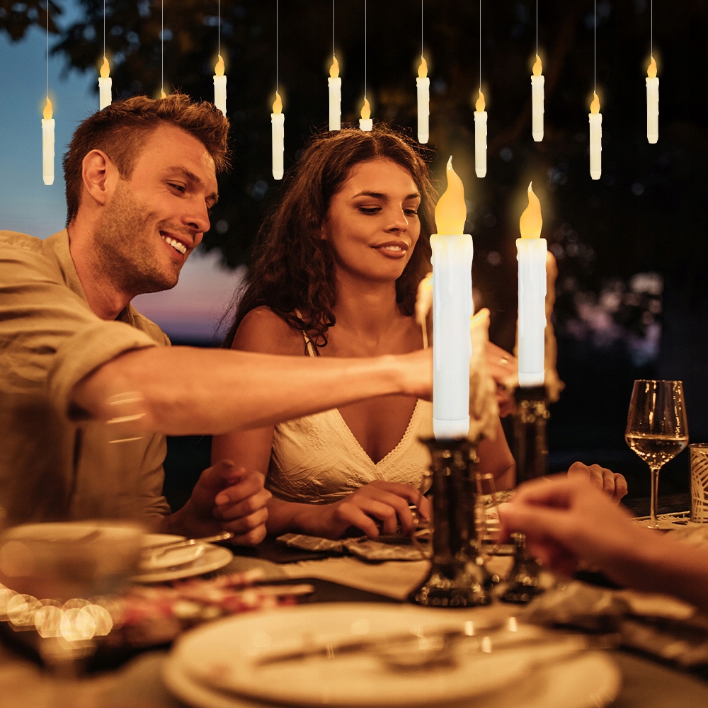 вигадливі плаваючі свічки, універсальне прикраса: свічки елегантно пливуть у повітрі, і майже непомітна риболовля дозволяє повісити їх на стелю, у дверях, вікнах, навколо ялинки або на підвіконні/стіл. Створіть магічну атмосферу в мить ока. 4 Без полум'я, без тепла - безпечно навіть у будинках з дітьми та тваринами.