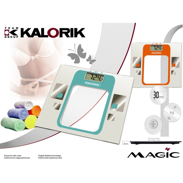 Калорик електронної масштабів із загартованим склом з великим і розбірливим електронним РК -дисплеєм. Основними функціями є: точний дисплей 0,1 кг/0,2 фунтів/0,1 -го з можливістю відображення в кг або фунт, автоматичному комутаторі та нульованню, індикатор перевантаження акумулятора та споживання, пам'ять для 10 людей . Вага також дозволяє вимірювати воду та жир вимірювати максимальне навантаження - 150 кг. Вага з літієвим акумулятором (CR2032) При покупці, будь ласка, інформація, яку ви вибрали вагу (інакше ми надішлемо випадково вибраний).