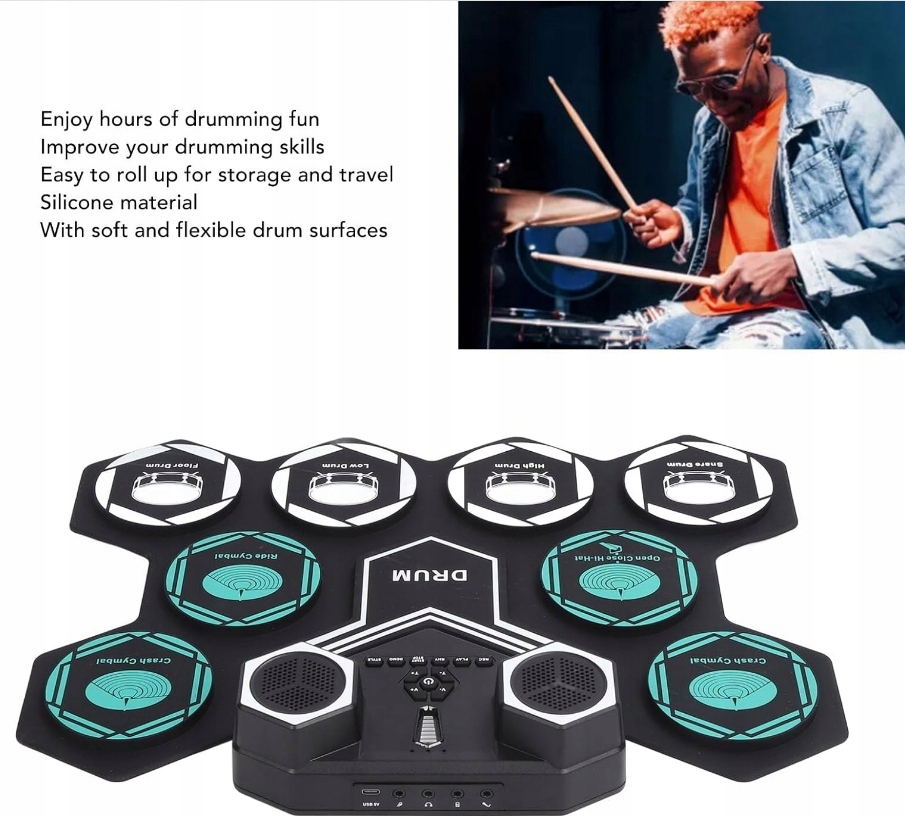 Якщо ви мрієте грати на барабанах, але не маєте місця чи бюджету на повнорозмірний набір, G6008 Blue Silicone Roller Drum Set є ідеальним рішенням. Завдяки передовій технології та компактному дизайну ця барабанна установка дозволяє насолоджуватися грою на барабанах у будь-який час і будь-де.