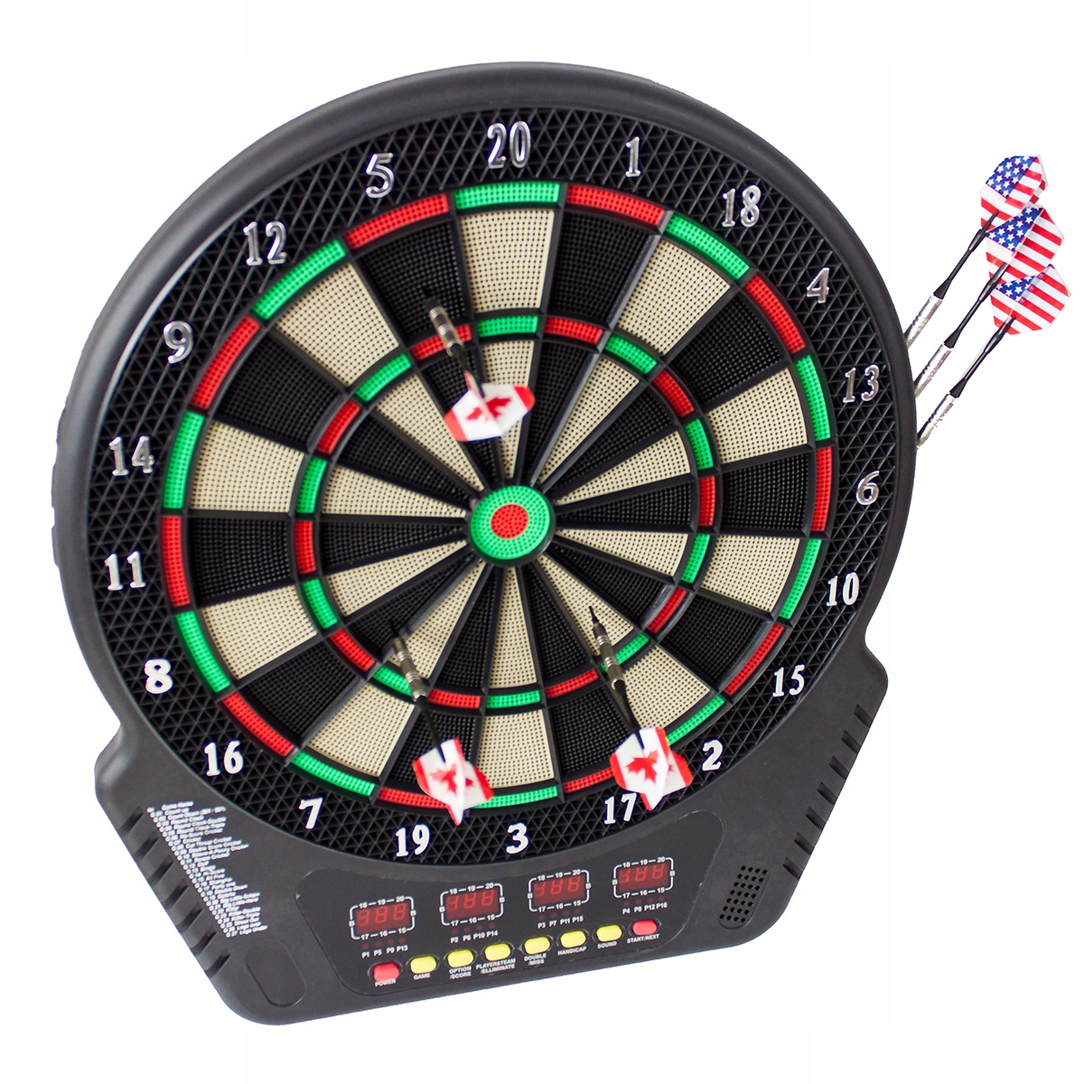 Електронна дошка для дартсу для відпочинку. Дарт має 27 ігор з 243 комбінаціями. 4 РК-дисплеї дозволяють спостерігати за результатами гравців. Дартс розрахований максимум на 16 гравців і для домашнього використання. У набір входять дротики з запасними наконечниками.