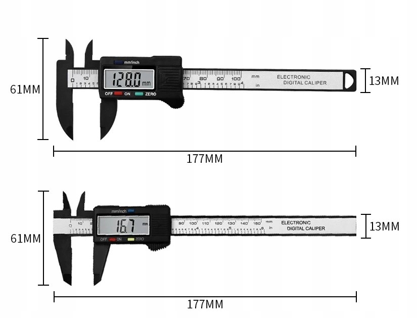 Електронний штангенциркуль є одним із основних вимірювальних інструментів для малих і професійних вимірювань. Штангенциркуль буде використовуватися в металообробці, деревообробці та багатьох інших роботах. Він дозволяє проводити внутрішні, зовнішні вимірювання та вимірювання глибини, результати яких надаються в міліметрах або дюймах. Результат вимірювання відображається на великому рідкокристалічному дисплеї.