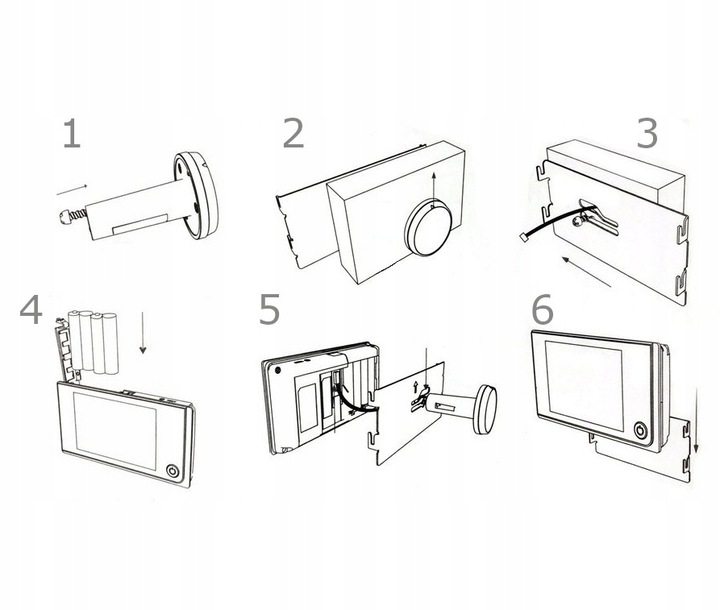 6: Обережно повісьте монітор на металевий кронштейн, обережно, щоб не пошкодити кабель. Зніміть захисну плівку з монітора та об’єктива камери.