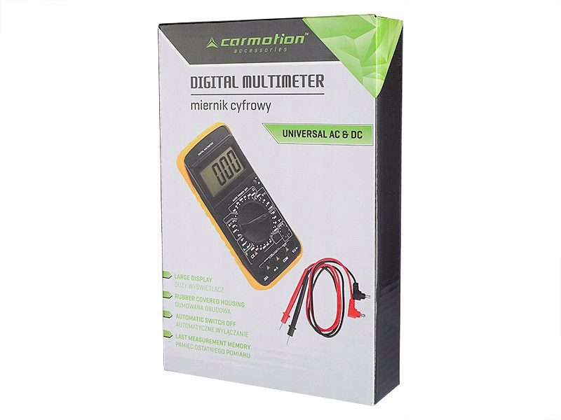 Він має вбудований акумулятор. індикатор, великий дисплей і підставка для полегшення зчитування вимірювань, а також міцний гумовий корпус. Проведення сигналізується зумером. Додатковою перевагою є функція HOLD, яка дозволяє приладу запам'ятати останнє вимірювання. Живлення від батареї 9 В - входить у комплект.