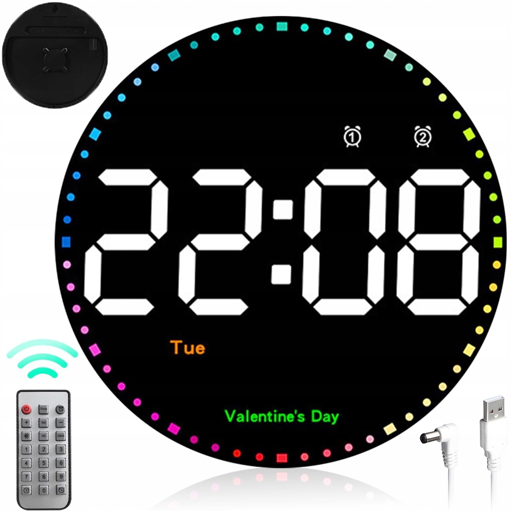 - - Унікальне кольорове світло щосекунди, колір світла поступово світлішає за годинниковою стрілкою щосекунди. Він також має функцію нагадування про відпустку, щоб ви могли насолоджуватися прекрасними спогадами про День святого Валентина, Різдво та Новий рік.