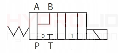 - Конфігурація: дві котушки 230 В постійного струму, 2-позиційний повзунок типу MB, стабілізований пружиною в положенні 0