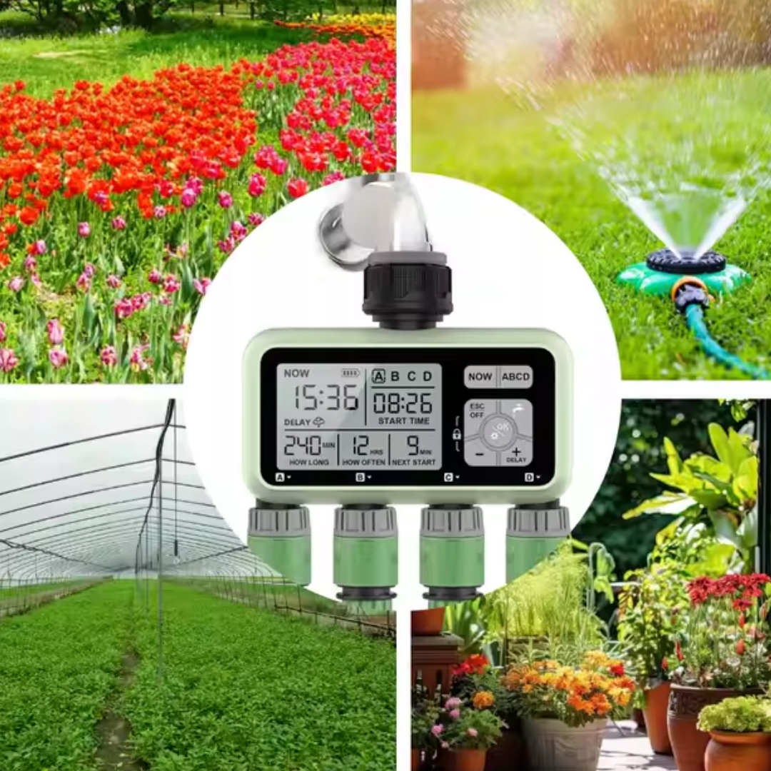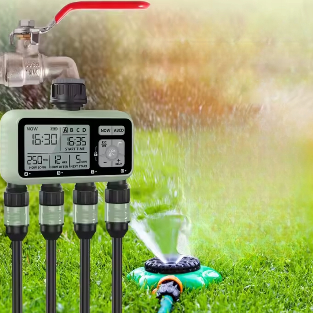✅ 4 незалежні зони поливу - Таймер дозволяє індивідуально поливати газон, грядки, горщики та декоративні рослини, регулюючи кількість води відповідно до їхніх потреб.