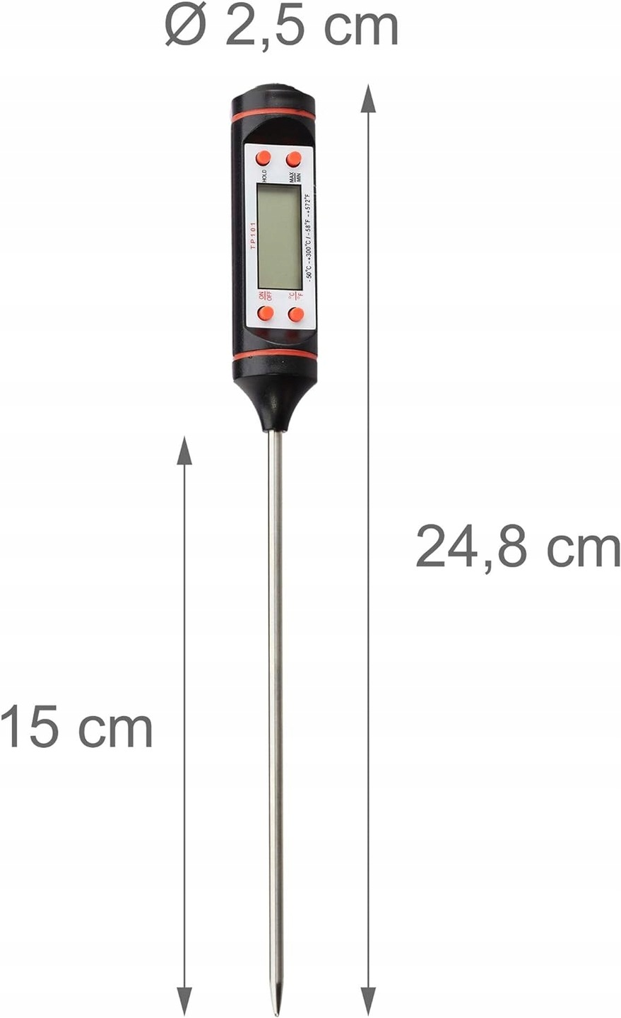 ✨ Штифтовий кухонний термометр є незамінним інструментом на кожній кухні. Універсальний і точний, він дозволяє швидко і точно вимірювати температуру таких страв, як м'ясо, тістечка, супи та багато інших.