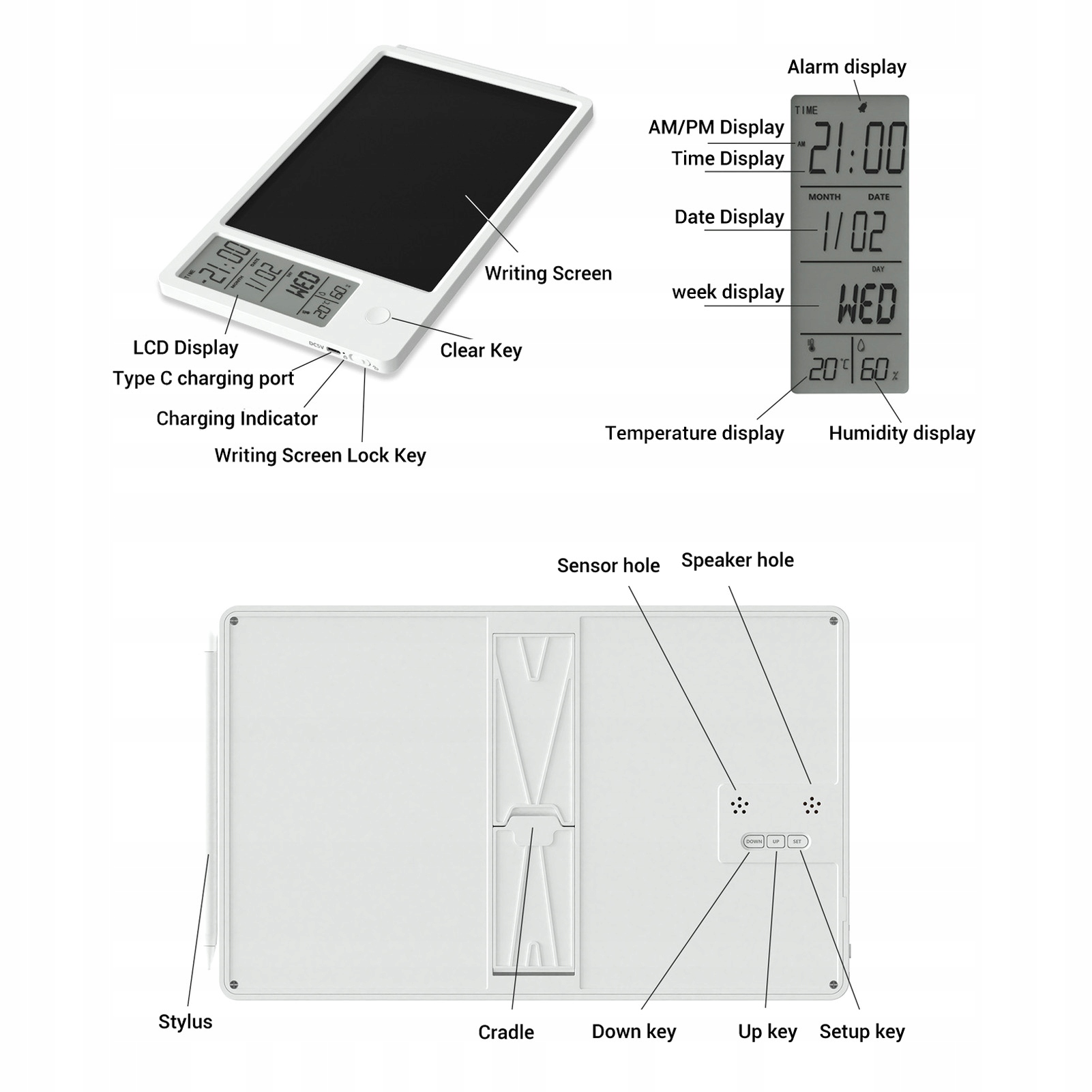 1. 9,5-дюймовий рідкокристалічний настільний календар: ідеальне поєднання стандартного настільного календаря та дошки для писання, що економить папір і дозволяє обчислювати та записувати те, що ви хочете. Він також чітко показує, який зараз день тижня.