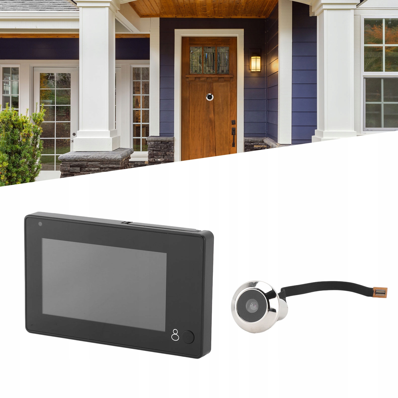 Функції: 1. З ДИСПЛЕЄМ: камера з видошукачем і 4,3-дюймовим дисплеєм HD забезпечує чітке зображення та зручне спостереження. Простий монтаж, діаметр несучого дверного отвору 15-22 мм, товщина несучої двері 30-110 мм.
