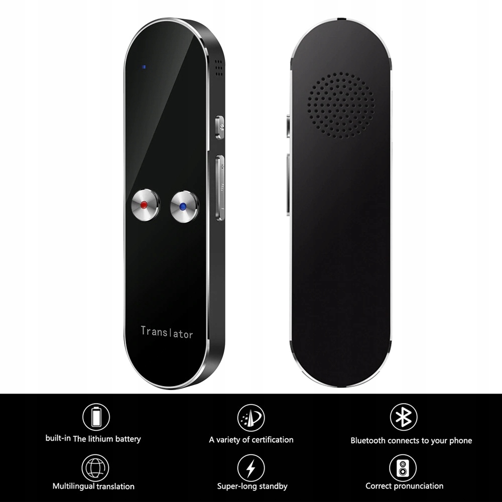 чутливий мікрофон , а система активного зменшення шуму дозволяє точно розпізнати та переклад мови навіть у галасливих умовах. Вбудований -впорядкований акумулятор дозволяє багато годин роботи , і коли вам потрібно, ви заряджаєте його зі стандартним зарядним пристроєм за допомогою мікро USB -кабелю, серед інших у смартфонах.