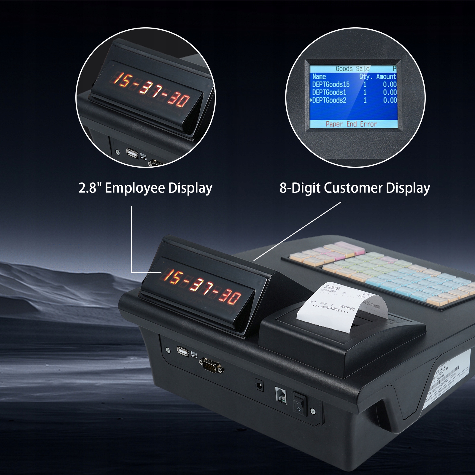 2. [Зручний інтерфейс] Завдяки 2,8-дюймовому дисплею для співробітників цей касовий апарат забезпечує чітке відображення продажів, звітів, редагувань тощо. Завдяки інтуїтивно зрозумілому інтерфейсу та зрозумілій навігації навіть продавці-початківці можуть швидко навчитися.