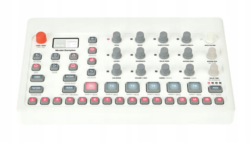 Звичайно, типовий секвенсор Elektron знову на борту: шість звукових або MIDI-доріжок. Мікротаймінг, коливання, індивідуальна довжина кроків від 1 до 64 кроків на доріжку дозволяють створювати захоплюючі візерунки навіть за межами сітки 4/4. Звичайно, ви також не повинні сумувати за своїми улюбленими Parameterlocks! Будучи першим пристроєм від Elektron, Model:Samples має всі важливі параметри безпосередньо на поверхні, тому немає необхідності переходити між сторінками меню. Компактний, легкий дизайн підійде майже будь-де і готовий до використання лише через кілька секунд після завантаження. Рекомендується пам’ятати про кабель-адаптер MIDI при переїзді на нове місце.