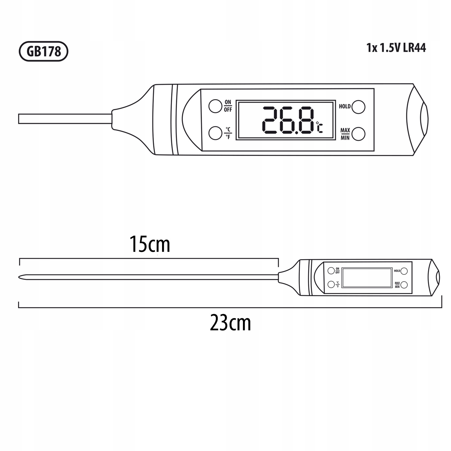 Високоякісний точний термометр GB178, призначений для вимірювання температури м'яса, тістечок, супів, соусів, води, молока, десертів тощо.