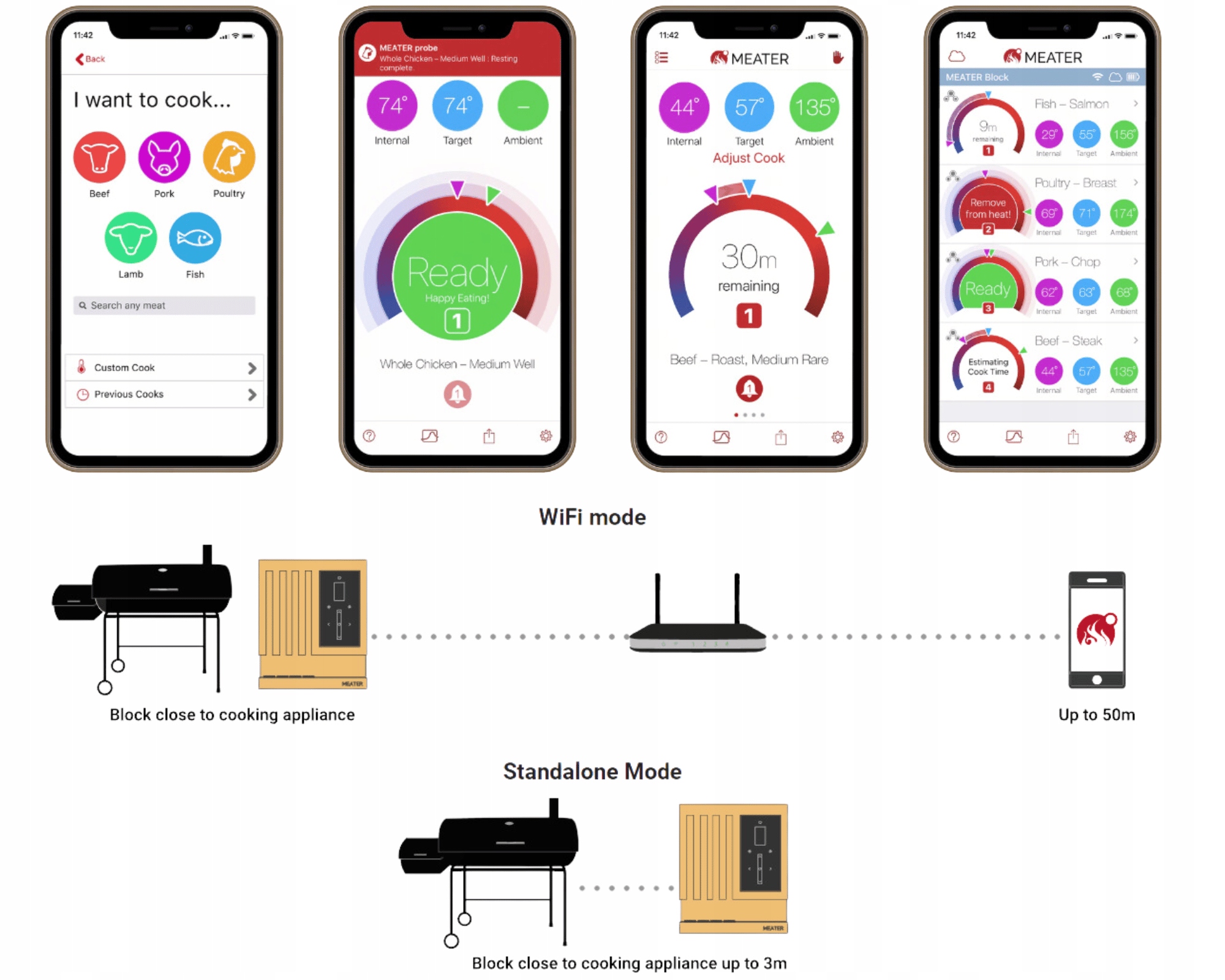 ☑️ Температуравказується в реальному часі, завдяки чому додаток допоможе вибрати ступінь випікання та потрібний час для будь-якого виду м'яса.